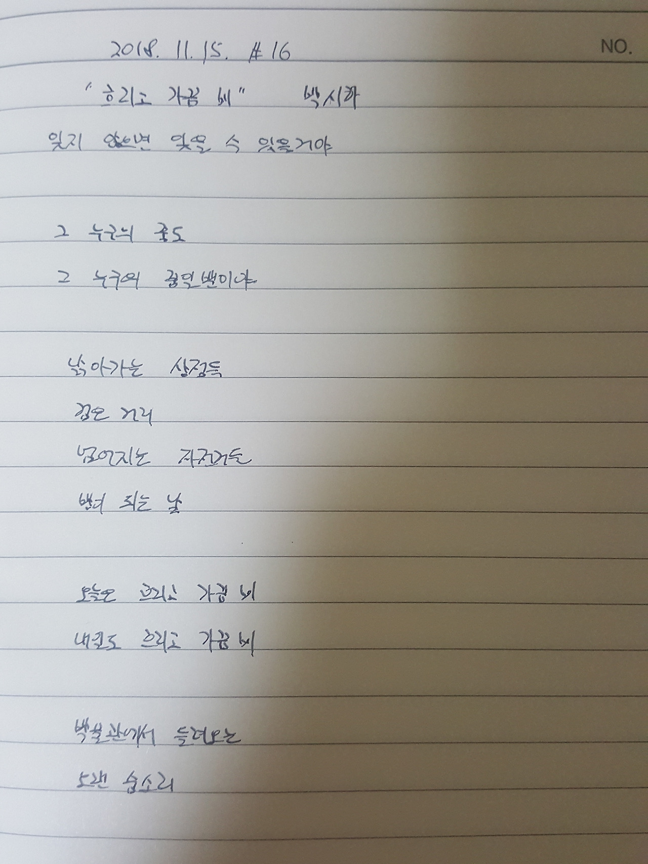 #016. 20181115. 흐리고 가끔 비 - 박시하