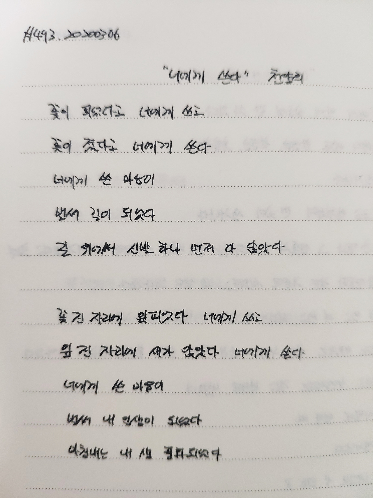 잎진 자리에 새가 앉았다 너에게 쓴다