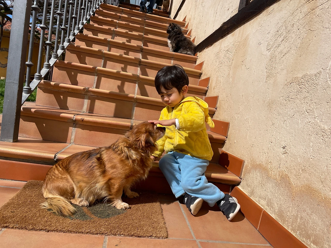 아이는 처음으로 함께하는 강아지들이 신기하고 재미있어 보였다. 금세 친구가 된 것 같았다.