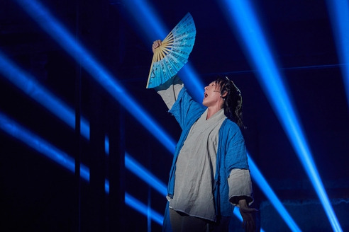 늘 청색 옷을 입고 다니는 주인공 '홍단' (ⓒPL엔터테인먼트)그럼에도 불구하고 이 극이 매력적인 이유는 생경한 극의 형식과 지극히도 세련된 넘버, 그리고 무엇보다도 극을 이끌어가는 배우들이 스토리 라인을 씹어먹을 만큼 파격적이기 때문이다. 단순히 넘버의 형식을 시조 기반의 '랩'으로 가져갔다면, 처음에는 신선하지만 점점 진부하게 느꼈을 것이다. 하지만, 〈스웨그에이지: 외쳐, 조선!〉은 대놓고 B급 감성을 표방하며, 현대의 엔터테인먼트적 콘셉트를 극의 여러 곳에 차용함으로써 퓨전의 형식을 외려 매우 세련된 것으로 만들어버린다.