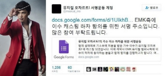 2016년 〈모차르트!〉 이수 캐스팅 당시 티저 이미지와 하차 서명운동 트윗