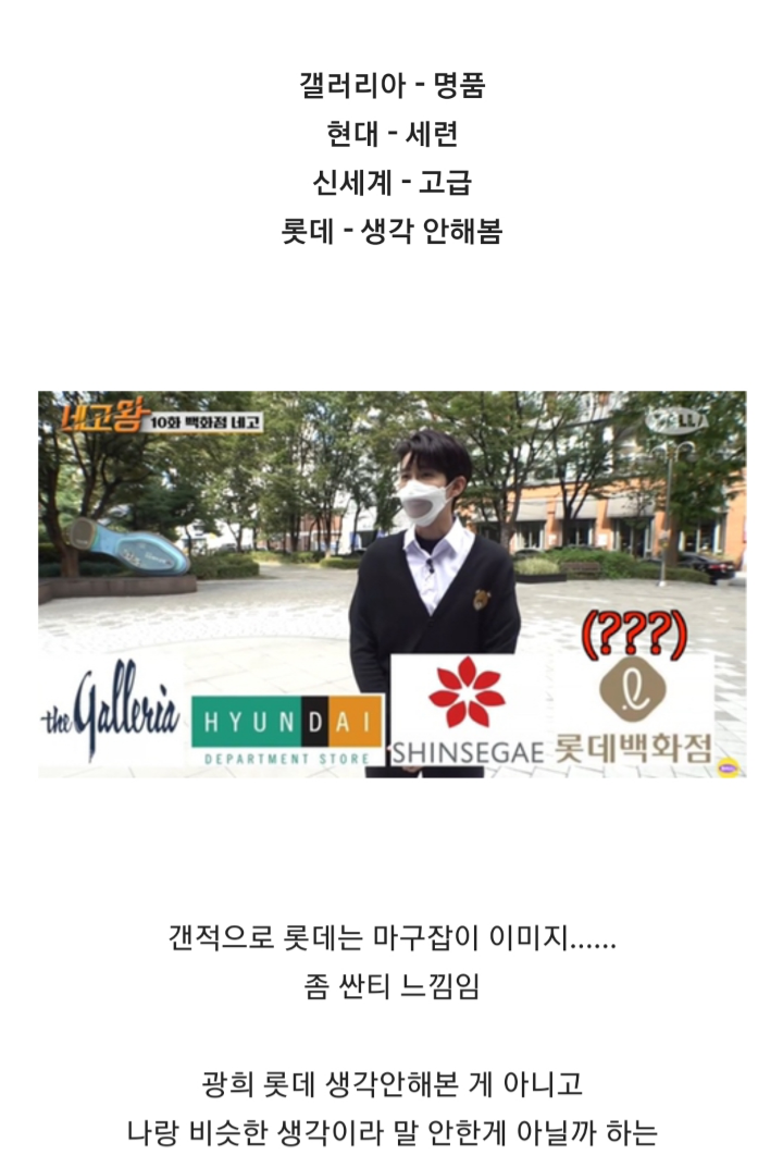 사람들이 생각하는 게 다 다를 겁니다. 누구는 '내가 자주 롯백 자주가는데 왜 욕하냐'고 말할 수도 있습니다. 누구는 현대가 인식이 나쁠 수 있죠. 이렇게 브랜드는 단순 로고가 아니라 '인식'이자 '무의식'적 느낌입니다.