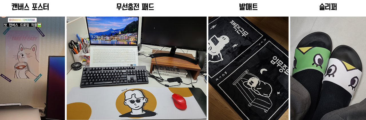 개인적으로는 사내 디지털 드로잉 동호회 <내일도 드로잉>을 운영했었는데, 지금 생각해보면 "얘가 이런 것도 했었어?"의 범주에 들어가는 활동이라 재밌었던 것 같다. 물론 그림을 잘 그리진 못한다. 잘 못 그린 그림으로 생각할지라도 굿즈로 만들어 증정하면 그 의미가 클 것 같아 디지털 드로잉 그림을 취합해서 굿즈로 제작해주는 활동을 했었다. 인스타그램도 운영했으니 궁금하면 들어가 보시길~ 1년 간 운영하며 만든 드로잉 굿즈는 4개이다. 1년 간 운영도 해봤지만.. 디지털 드로잉은 내가 좋아하고 꾸준히 할 수 있는 활동이 아니란 걸 느껴서 지금은 운영하지 않는다. 하지만 1년 간 사내에서 가장 큰 규모의 동호회를 운영하면서 오래 할 수 있는 취미가 아니라는 걸 깨닫기도 했고, 구성원분들께 나눈 것도 많아 뿌듯했다.