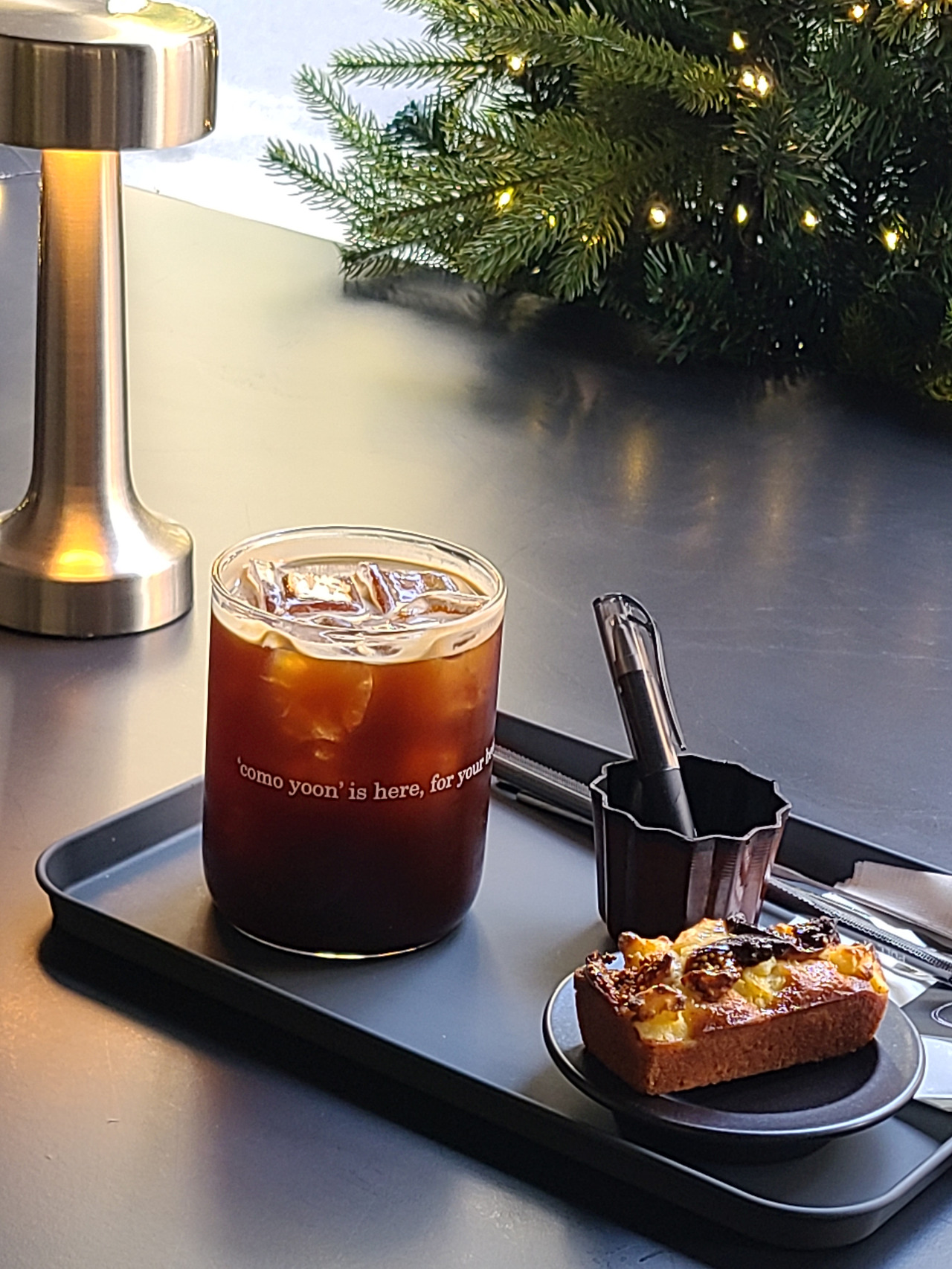 고소하고 묵직한 향이 나는 원두의 아이스 아메리카노와 상큼한 맛이 나는 무화과 휘낭시에 같은 페어링(?)