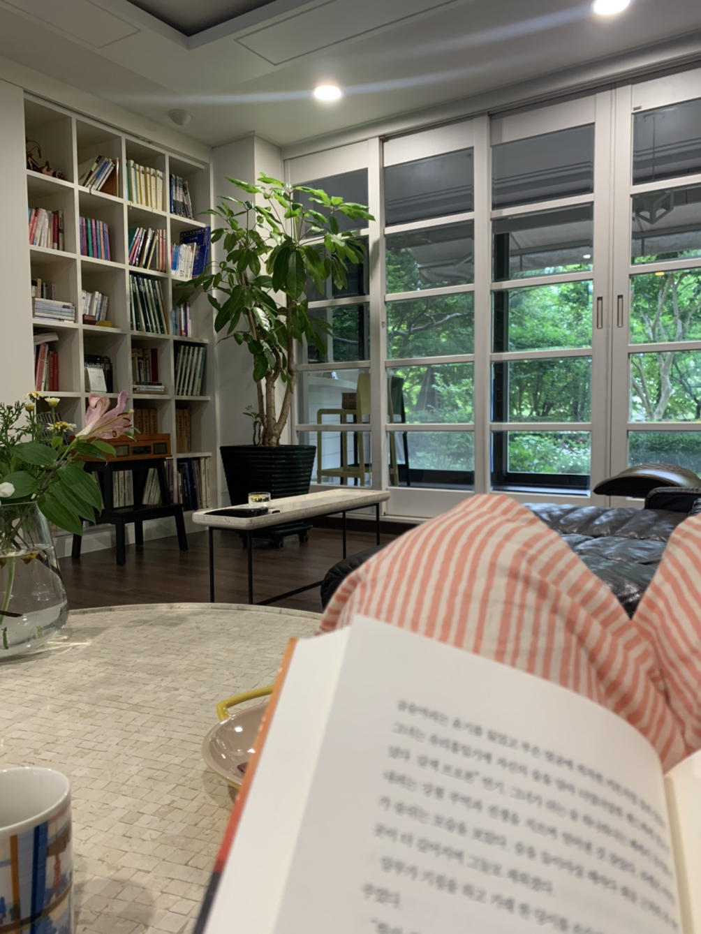 커피 내린 뒤 책 읽는다.