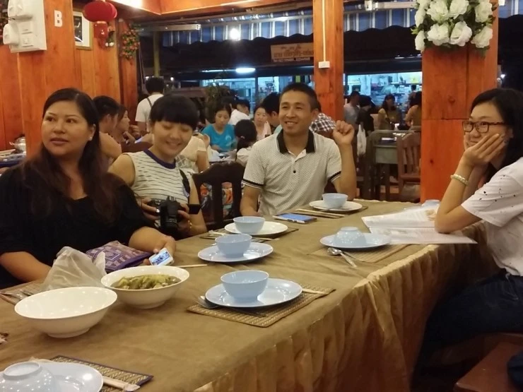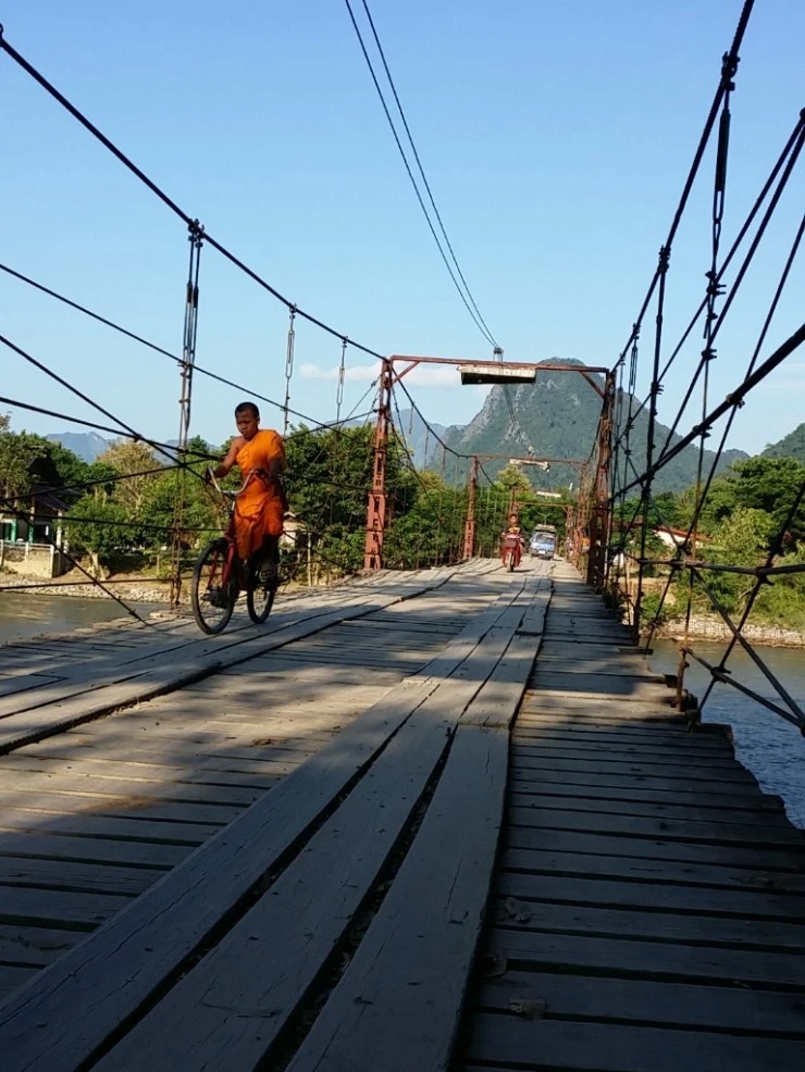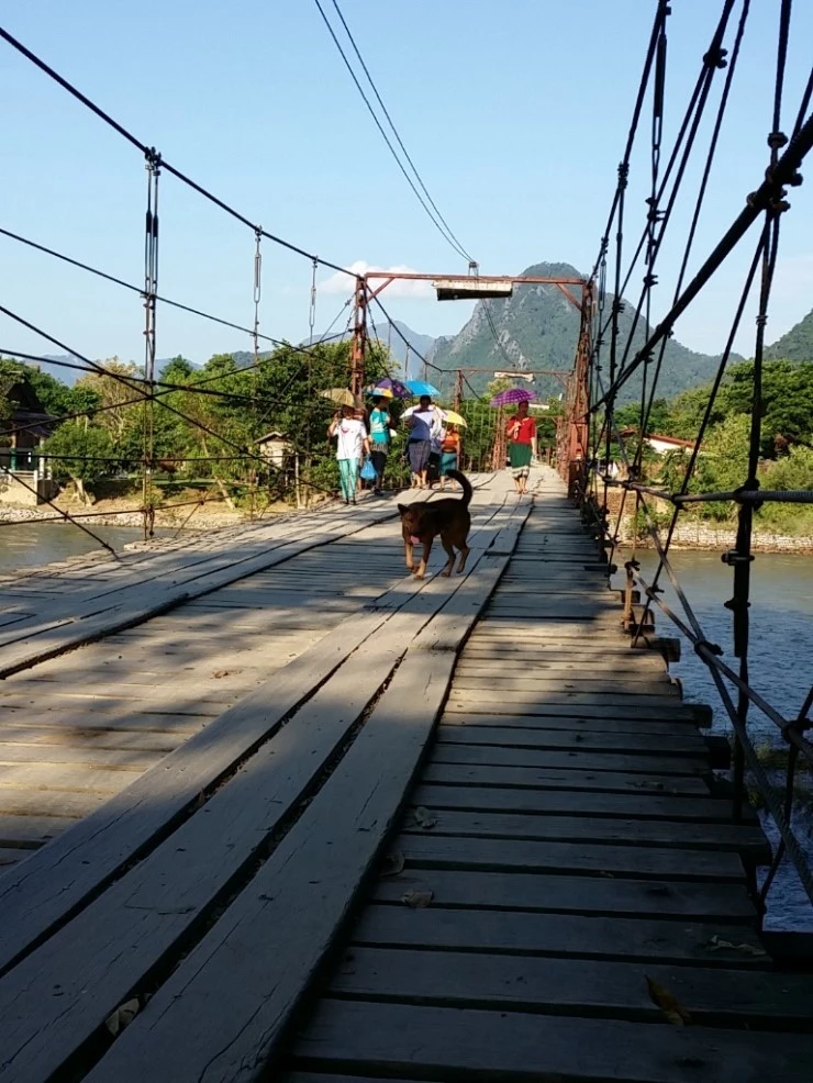 루앙 프라방에서 방비엥으로 올 때 함께 밴을 타고 온 사람들이었다. 6시간 동안 쉴 새 없이 산길을 꼬불꼬불 달리기 때문에, 그런 길에 익숙하지 않은 사람들은 쉬운 길 같지 않아 보였다. 세상 참 좁다. 14명이 손님으로 탔었는데, 나와 서양인 커플 둘을 제외하고 몽땅 중국인이었었다. 어찌나 목소리가 크고 즐겁게 이야기를 하던지, 혼자 음악만 듣던 그 누구도 그들이 중국인인 줄 한 눈에 알아보았으리라. 그러던 그녀들이 꼬불꼬불한 도로가 끝도 없이 펼쳐지자 입을 다물고 잠을 자거나 더러는 고통스러운 시간을 보내는 듯했다. 결국 세 명은 참지 못했다. 차를 세우기도 하고....... 멀미에 취약한 이들에게는 힘든 여정이었을 것이다. 그래도 방비엥에 도착해 에어컨도 나오지 않는 털털거리는 밴을 합승해 메인 도로까지 왔을 때, 가장 먼저 내리는 나를 향해 바이~를 외쳤었고, 그보다 이른 아침 밴을 타러 툭툭을 타고 호텔을 돌 때, 내가 탄 툭툭 에 올라앉으며 자신들이 먹던 바게트를 함께 나눠주겠다고 했던 그녀들이었다. 어찌 보면 여행을 통해 가장 친절했던 외국인들이었던 셈이었다.