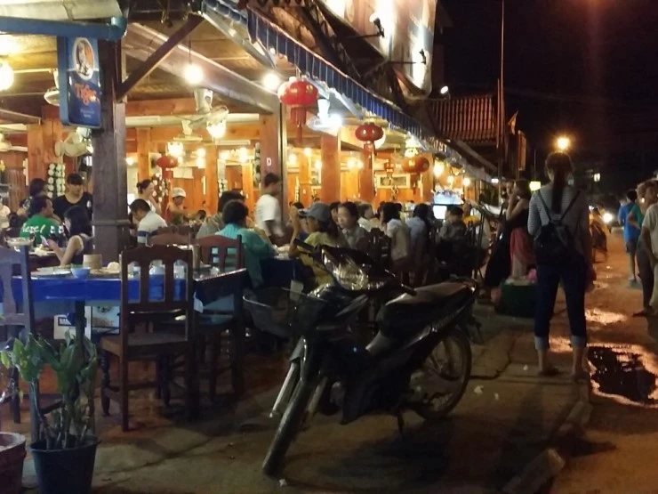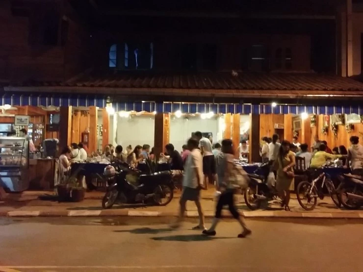 밤, 방비엥 메인 도로. 샤워를 하고, 투어 예약과 비엔티엔 행 표를 예약 해 둔 뒤 마음 가볍게 어슬렁거리며 나갔다. 어둡지만 길 양쪽으론 관광지라면 어느 곳이나 그렇듯, ATM과 식당들, 그리고 특별히 여기 방비엥에는 각종 레포츠를 안내하는 간판들이 여러 군데 보인다. 루앙 프라방의 기품 있는 면모에 편안했던 사람들은 방비엥에서는 다소 당황스러울 수 있을 것이다.