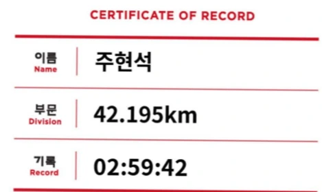 정신이 번쩍 들었다. 목표가 바로 앞인데, 이렇게 포기할 수는 없었다. 근육을 억지로 쥐어짜고 다시 달리기 시작했다. 10km 같은 1km였지만 이윽고 결승점이 보이기 시작했다. 종합운동장 입구를 통과하고 트랙을 한 바퀴 돌았다. 환호성이 들리기 시작했다. 모두가 나를 주목했다. 그렇게 내 발이 피니쉬 라인을 넘어갔을 때, 머리 위에 전광판에 2:59:42라는 숫자가 찍혔다. 달리기는 커녕 조깅도 하지 못했던 120kg의 거구가, 1년만에 최연소 서브3 명예의 전당에 오르는 순간이었다.
