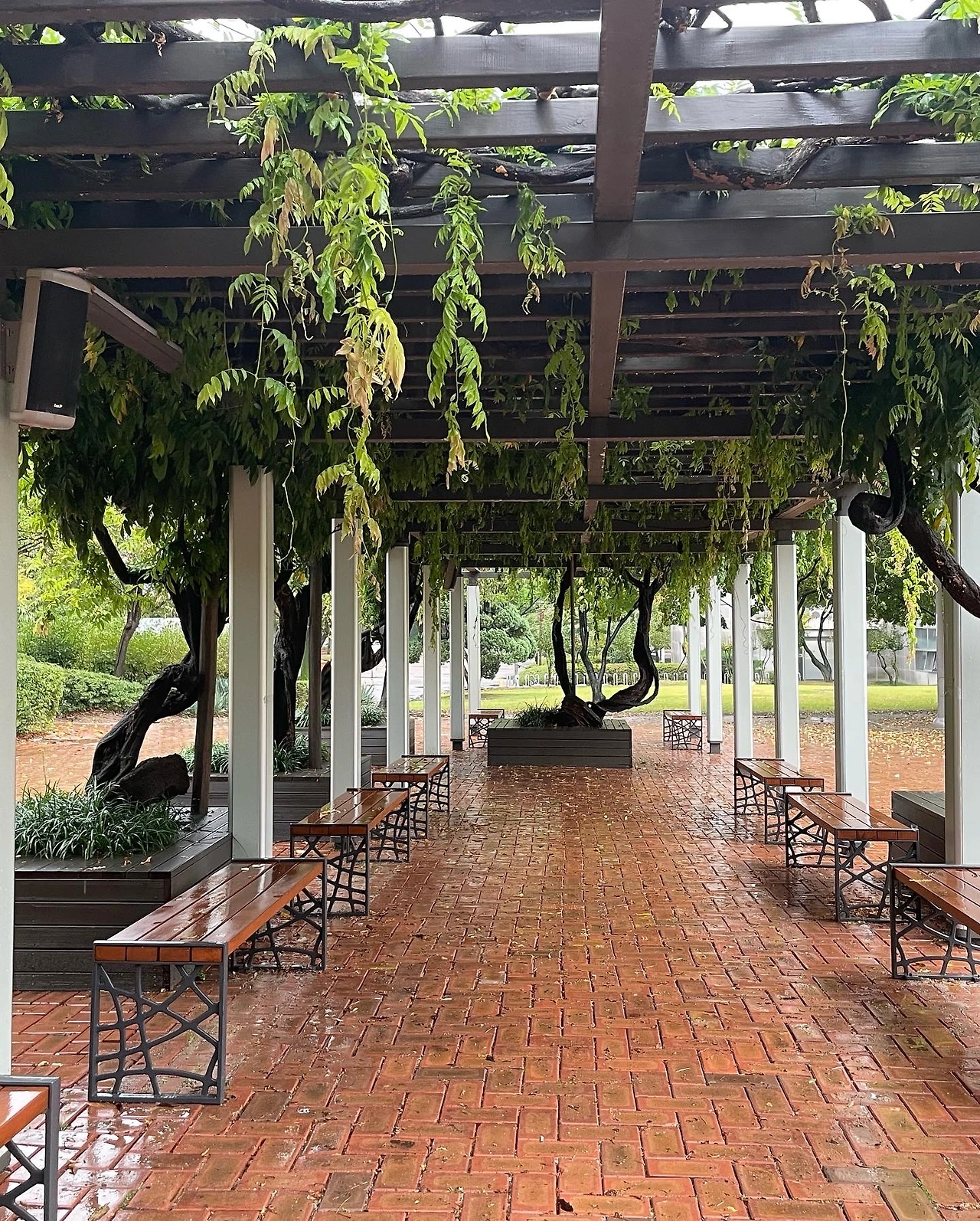 그 이름 모를 빛의 설계자는 온전한 것만 두지 않았다. 그늘을 걱정해서였을까. 학교 곳곳에 덩굴자리를 만들었다. 덩굴은 스스로 자라 윤슬처럼 빛 닿는 자리를 채웠다.