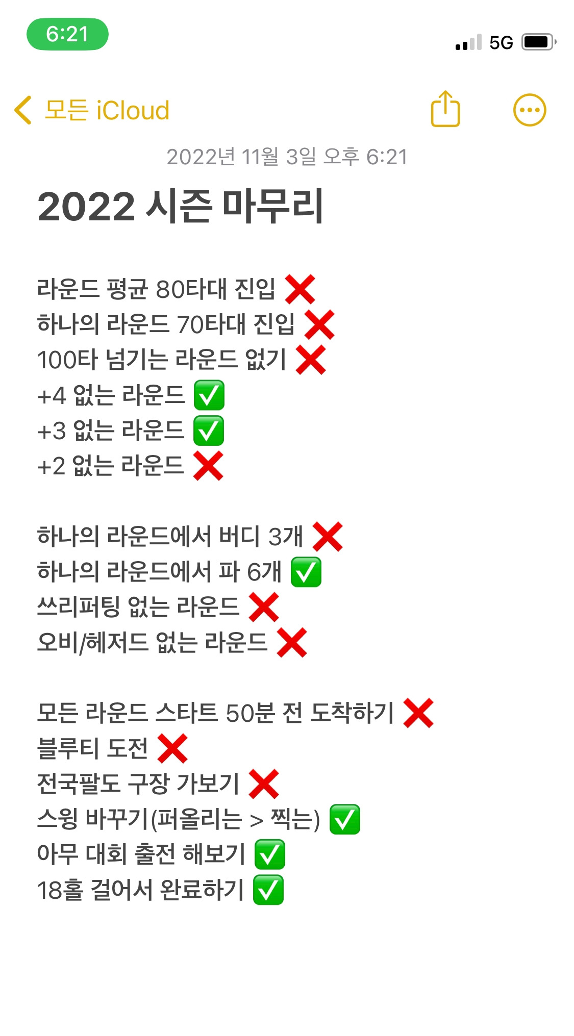 지난주 영종도 라운딩을 마지막으로 이번 시즌 골프를 마무리했다. 다 더해 23번 갔으니 한달에 두번꼴이다. 올해는 인생 스트레스와 그 대처에 대한 작은 깨달음을 얻었고 함께 다닌 동반자들과 매번 재밌게 쳐서 의미 있는 시즌이었다.