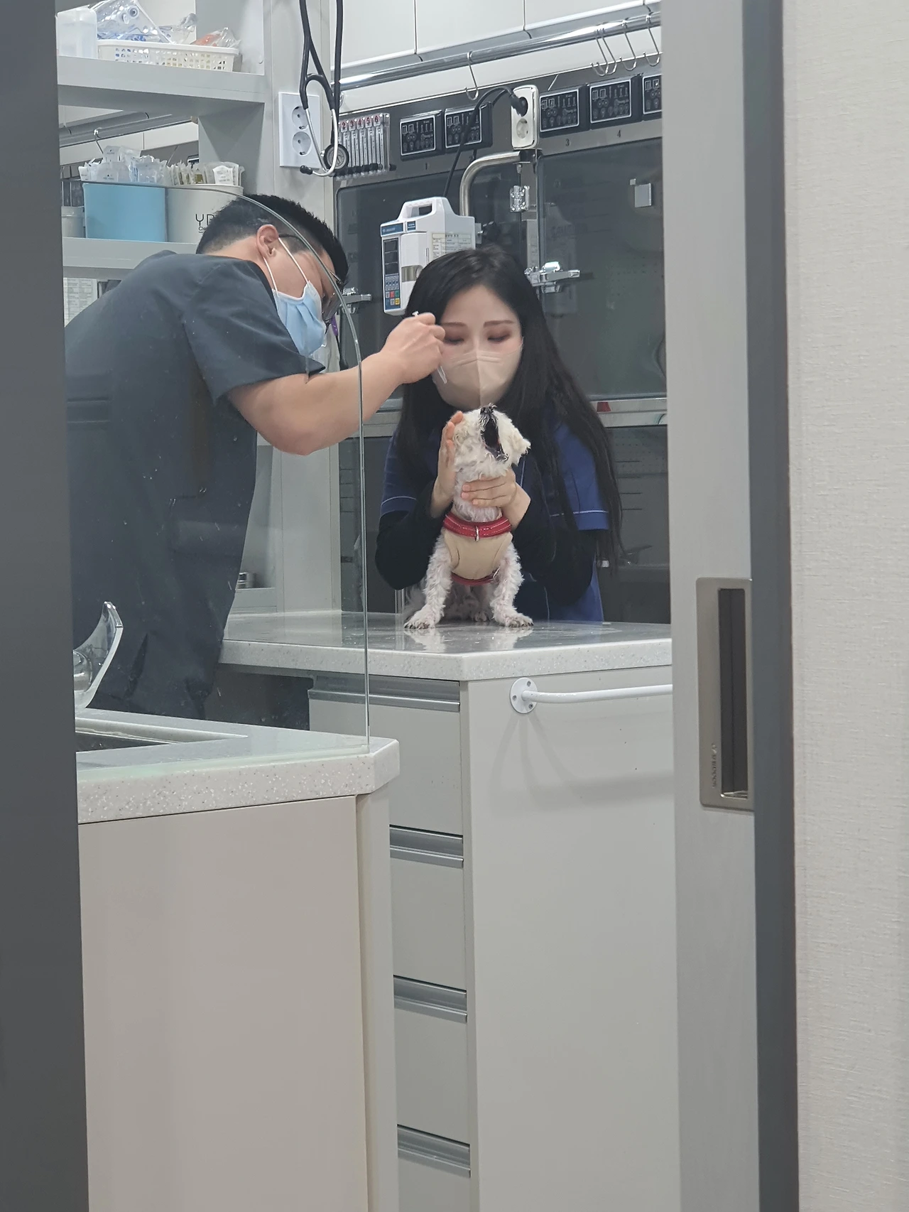 며칠간의 투약 후에 경과를 보러 병원에 갔다. 다솜이가 먹는 약은 항생제가 들어있어 일정기간을 반드시 투약해야 하는데, 이번 결과로 인해 일주일을 더 연장해야 할지 여부가 결정되었다. 선생님은 다정하게 “확인하고 올게요~ 다솜아 가자!” 하고는 처치실에 다솜이를 데리고 들어갔다. 평소처럼 두툼한 장갑에 안긴 다솜이는 처치실로 사라지는 그 순간까지도 애타게 나를 쳐다본다. “다솜아 잘 다녀와!”라고 인사하지만 속으론 안쓰럽기 그지없다.