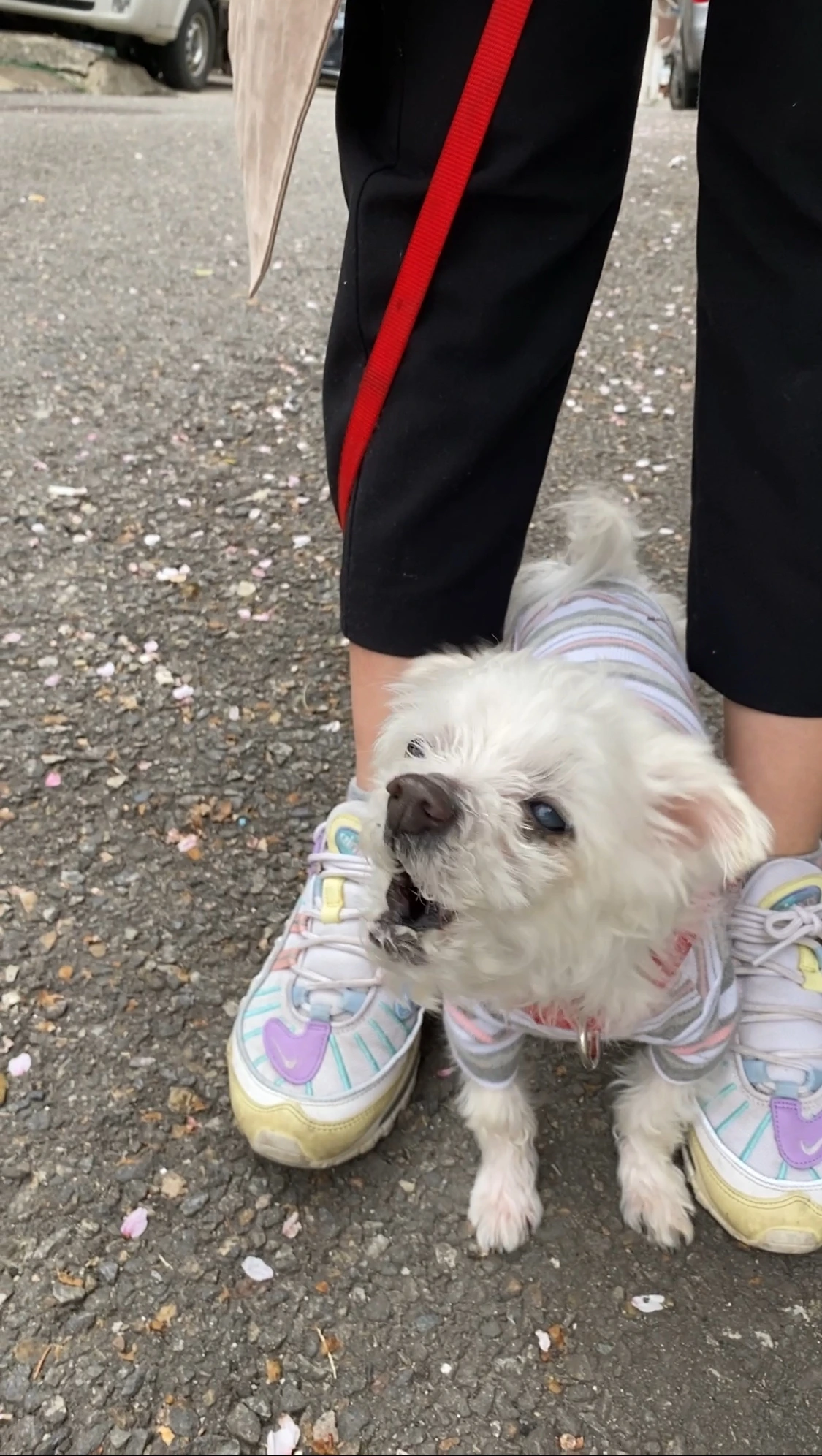 호기롭게 짖었는데 생각보다 너무 가까운 거리에 있거나 상대를 이길 수 없을 것 같을 땐 내 다리 뒤로 숨었다. 리드줄에 배배 꼬여 더 이상 움직일 수 없을 때까지 내 다리 사이로 파고들어 자신의 뒷배를 적극 활용했다. 그 상태에서는 더욱 안전하게 마음껏 짖을 수 있기 때문이다.