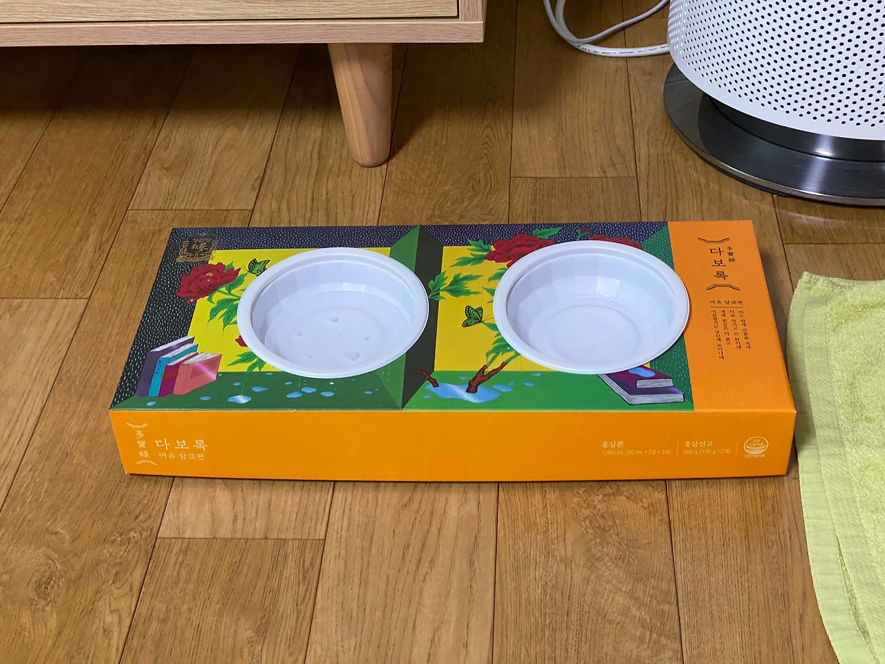 아빠는 다솜이의 식탁을 만들고 있었다. 내가 늦잠을 자는 사이 엄마가 다솜이의 아침밥을 챙겨주었는데, 여행용 밥그릇으로 가지고 온 햇반용기가 다솜이의 혀놀림에 자꾸 뒤로 밀려났다. 이 모습을 지켜보던 아빠가, 다솜이가 밥을 먹기 불편해 보인다고 맥가이버처럼 칼을 꺼내 든 것이다. 그리고 용케 자기 것인 줄 알아차린 다솜이가 칼질(?)하는 아빠의 모습을 흐뭇하게 지켜보고 있었다.