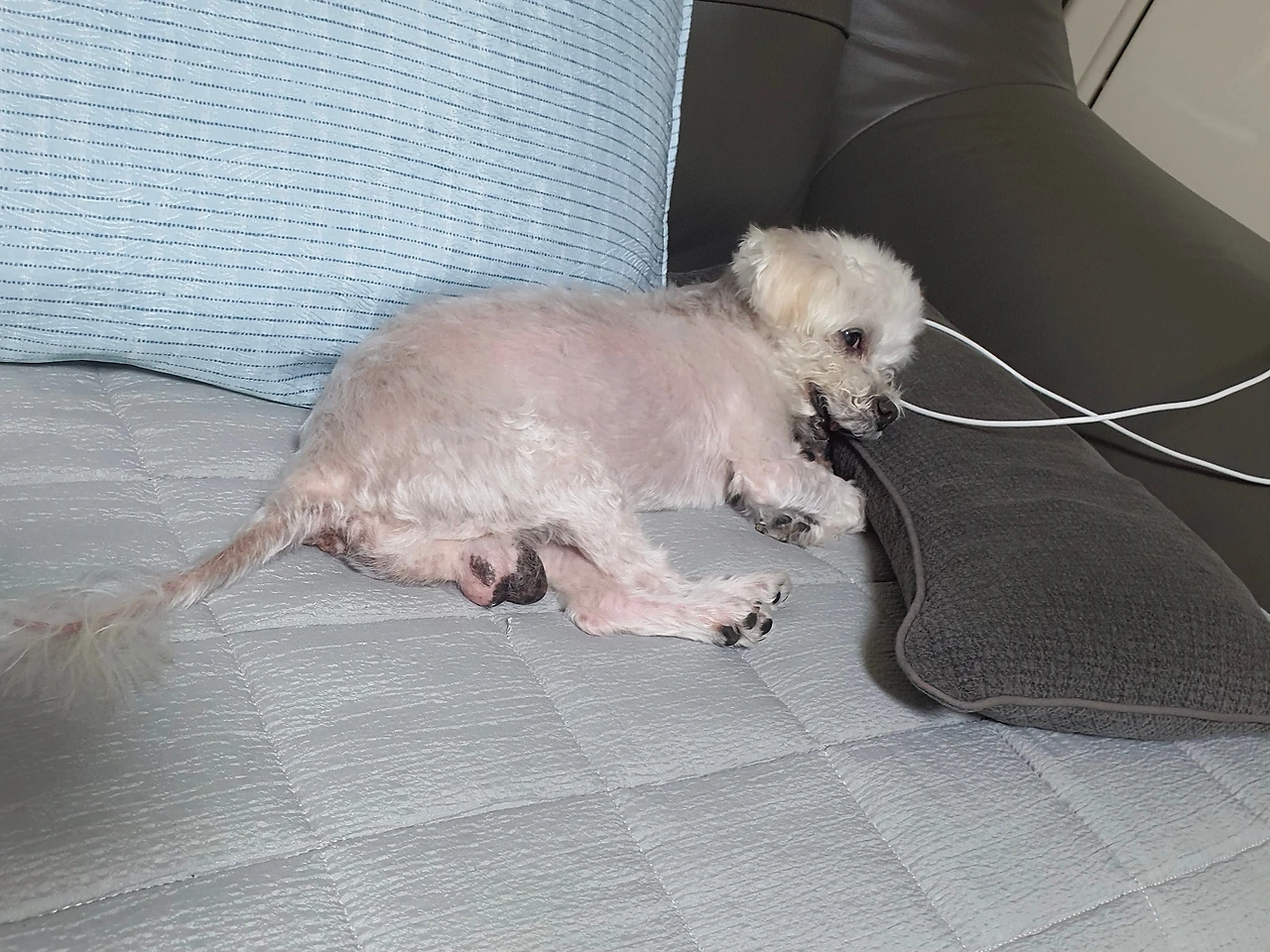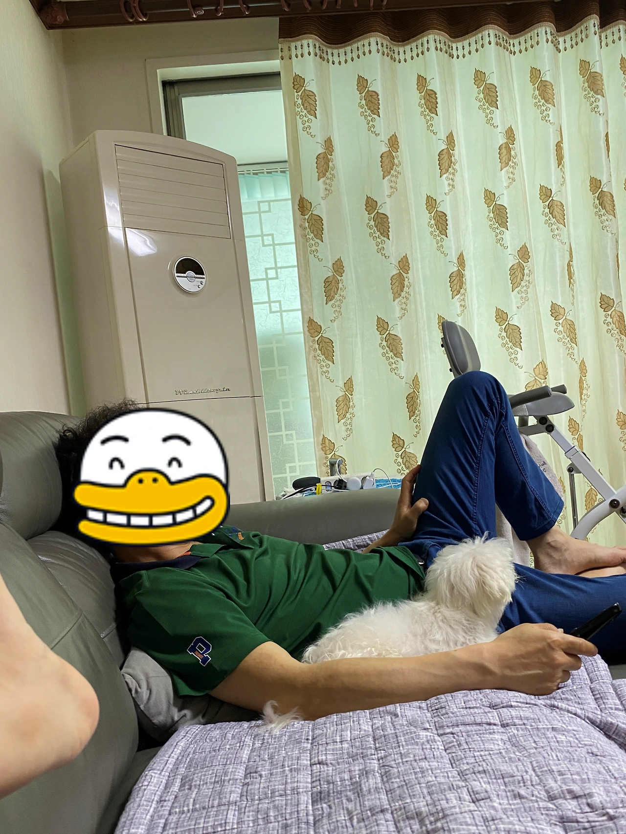 게다가 서울 집의 소파 왼쪽 자리가 다솜이의 지정석인 것처럼, 전주 집의 소파 왼쪽 자리는 아빠의 지정석이다. 늘 같은 자리에 앉거나 누워서 TV를 보기 때문이다. 다솜이 눈에는 이런 모습마저 제법 '강아지스럽다'라고 생각했을지도 모르겠다. 즉, 멋있어 보였다는 뜻이다. 그래서인지 아빠가 외출했을 때에는 작은 흔적이라도 찾듯, 소파 왼쪽 자리에서 아빠가 베던 베개에 코를 박고 누워있기 일쑤였다. 그 모습을 보고 있자면 다솜이에게서 어디선가 아빠의 향기가 느껴지는 것 같기도 했다.