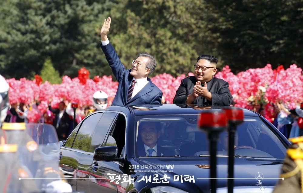 카퍼레이드 또한 압권이었는데, 문 대통령과 김 위원장이 동승한 차량이 평양 순안공항을 빠져나와 대통령 숙소인 백화원 영빈관을 향하는 내내 길가에는 붉은 꽃 장식과 한반도기를 흔들며 문 대통령의 방북을 환영하는 북한 인민으로 가득했다. 실로 극진한 환영이었다.