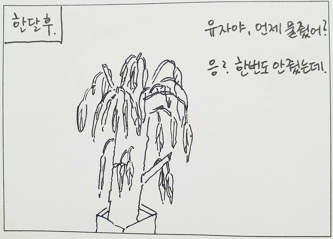 시들은 나무에 물을 준건 나의 실수였다.
