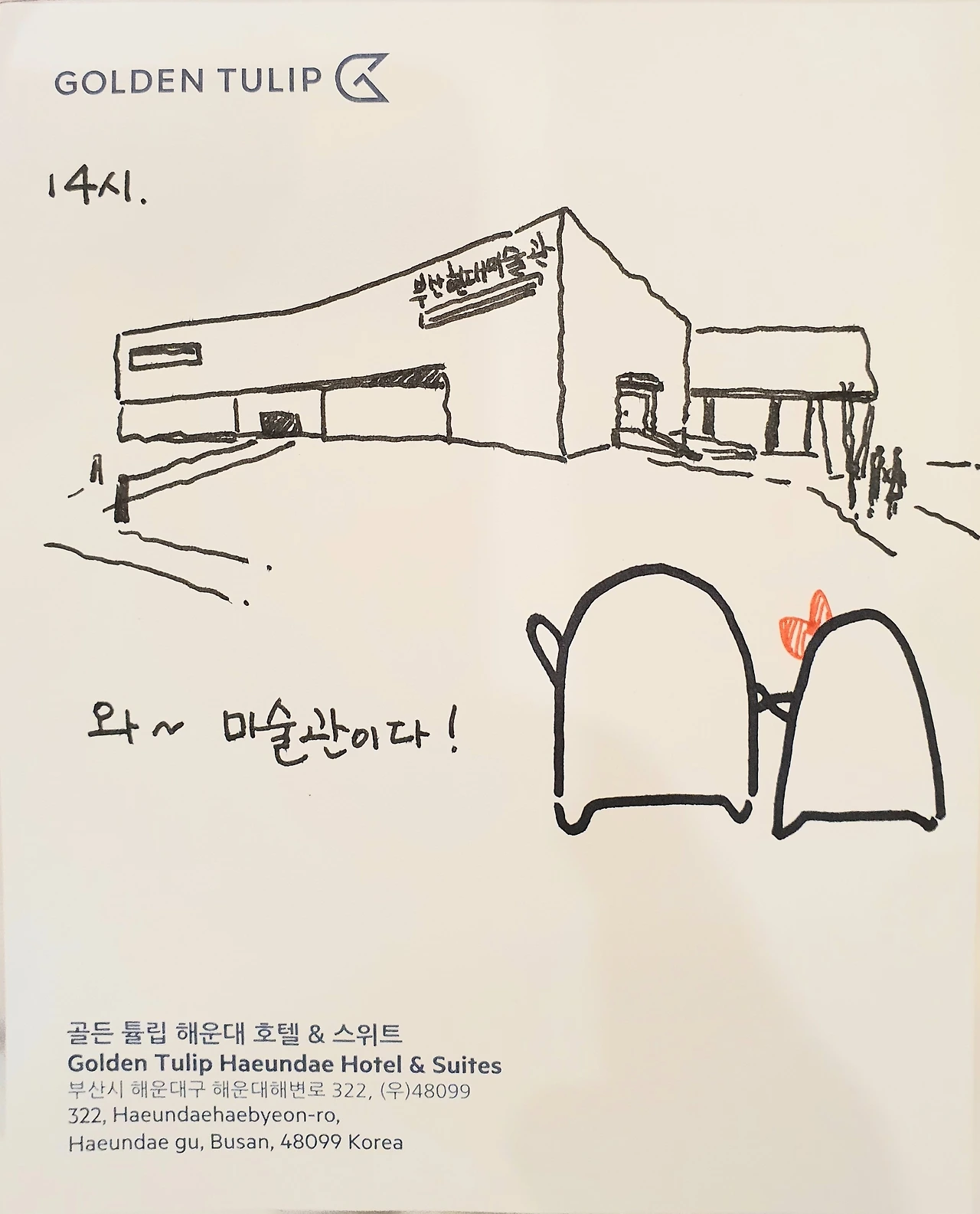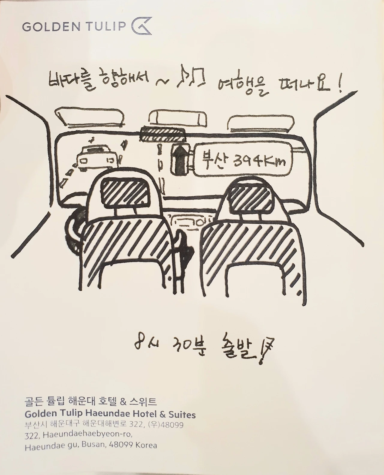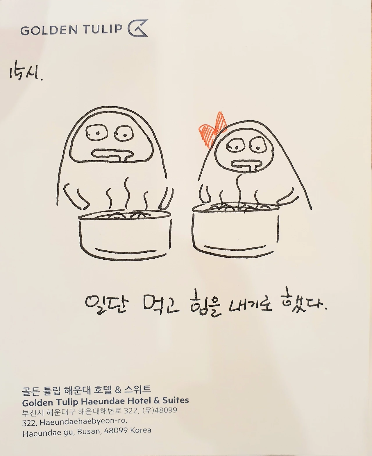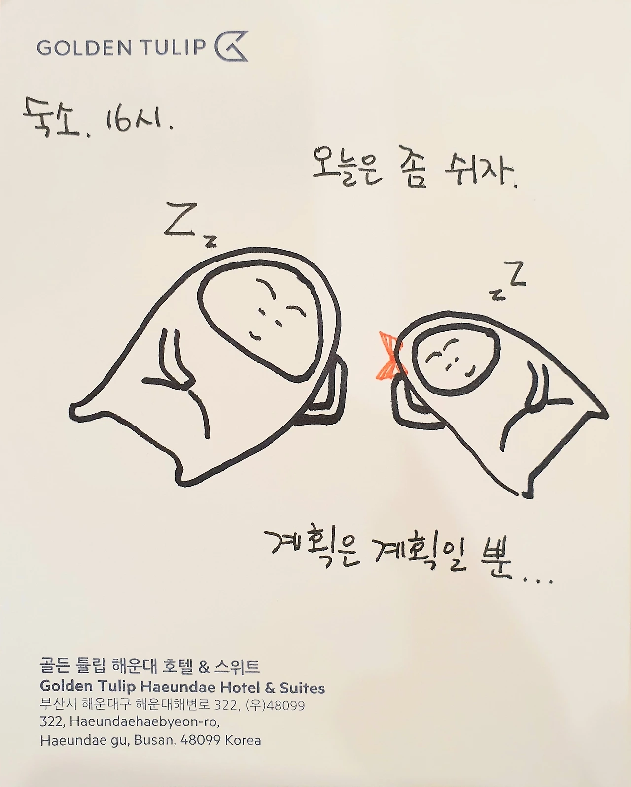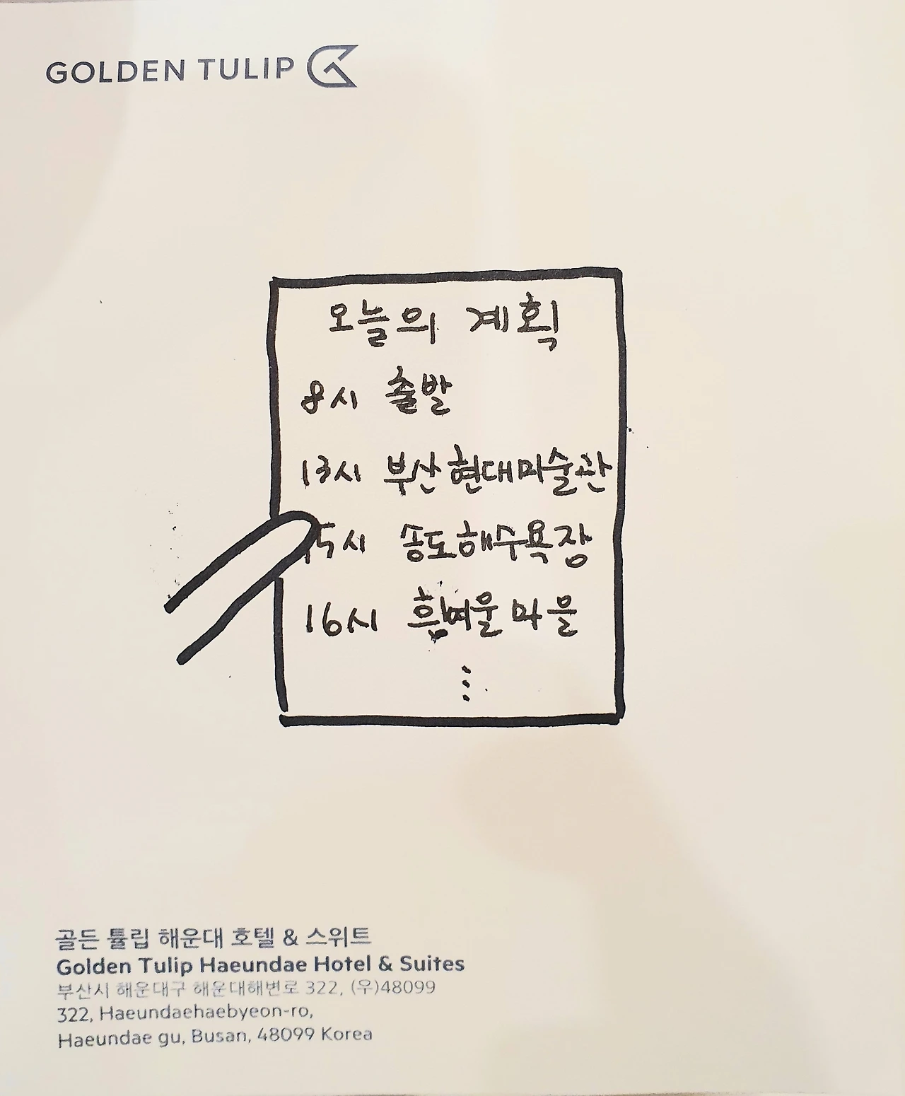 ※ 숙소에서 잠들기 전 옆에 놓인 메모장에 그림일기를 썼다.