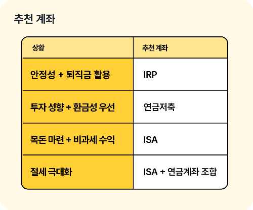IRP, 연금저축, ISA는 모두 절세 통로이지만 쓰는 목적이 다릅니다.