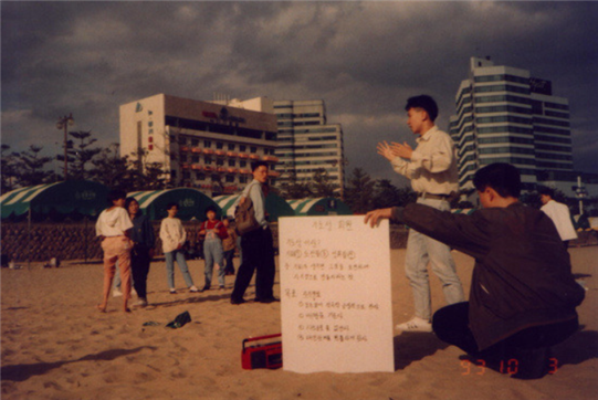 그렇게 나의 끊임없는 설득에 결국 친구들은 주말에 해운대 백사장에서 만나기로 약속을 했다.