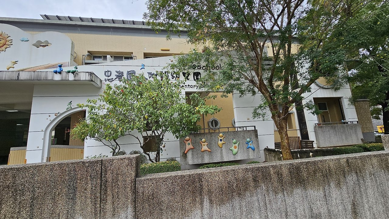 첫번째 학교는 타이중 서구 제5시장 근처에 있는 충효국민초등학교 부설 유치원이다. 가슴에 별과 사랑, 안전표시를 달고, 새싹을 연상하게 하는 아이의 이미지가 친근하게 느껴진다. 자유롭게 놀이하는 아이의 이미지로 건물 외벽을 꾸민 것을 보니 아이들은 본래 놀이를 해야 한다는데 모두가 동의하고 있는 것인가 싶다. 이러한 아이의 자유분방함은 교실 현장 속에서도 살아나고 있는지 의문이 들기도 한다. 교사일 적 자유로움을 사랑하면서도 통제의 유혹 사이에 갈등했던 때가 오버랩됐다. 넓은 공간은 아니지만 이 초등학교 부설 유치원은 바깥 공간에 낮은 언덕과 미끄럼틀 형태의 놀이터가 있고, 그물망이 있는 구름다리, 시소가 알차게 구성되어 있다. (유치원 심볼일 텐데, 이것을 디자인하느라 얼마나 많은 시간을 거쳤을지 상상해본다. 내가 아는 유치원 원장선생님은 마크 결정을 위해 디자이너와 17번의 수정과정을 거쳤다. 그 지루한 과정을 거쳐 나온 심볼은 정말 막강했다. ^^;; 나는 솔직히 수정횟수를 원장선생님이 세고 있었다는 사실에 더 놀랐다. 그 완벽함이란 ㅡ.ㅡ;,)