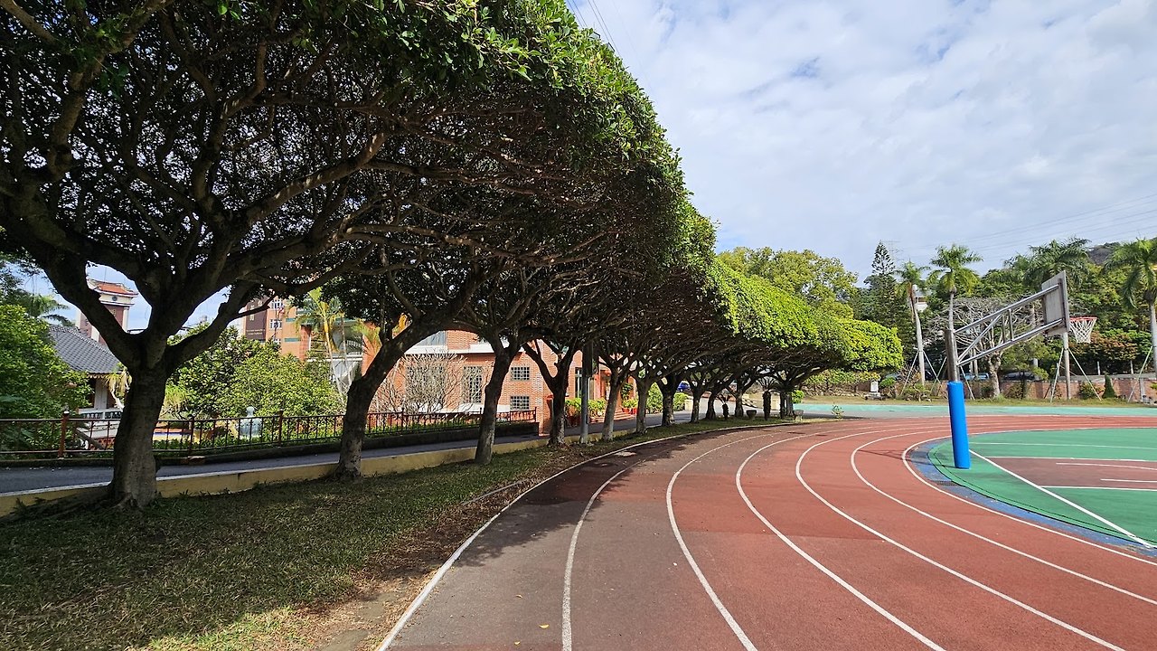 타이중 시립 밍타이 고등학교 교내 트랙(왼쪽) 등교길(오른쪽) 타이중 시립 밍타이 고등학교 등교길(왼쪽) 학교 건물로 올라가는 계단 옆 나무(오른쪽) 무봉임가래원: 오리떼가 노는 작은 연못(왼쪽) 무봉임가화원 임헌당박물관단지(오른쪽) 우리나라에서도 전형적으로 볼 수 있는 궁전같은 유치원이나 큰 규모의 도시 학교를 타이중 시내에서도 볼 수 있다. 특이하게 플래카드나 홍보를 위한 액정을 교문앞에 설치해놓은 경우가 많았다. 타이중도 학교가 실적을 거두고 어느 한 분야에 특화된 곳이라는 것을 알리는 것이 중요한 듯했다. 아무래도 노인 인구가 많고 출산율이 낮은 나라라서 학생 유치가 중요한 건가 짐작해본다. 대동국초등학교는 건물의 웅장함과 높이가 끝도 없다. 고개가 꺾일 때까지 쳐다보다보면 옆에 또 거대한 건물이 연이어있다. 도심에 있는 학교는 아무래도 규모가 클 수밖에 없다. 일자리때문에 사람들이 모일 수밖에 없다보니 학생도 자연히 많을 수밖에 없고, 학교 높이도, 울타리도 점점 높아진다. 더군다나 바로 옆에 육교가 있고 외부로 노출될 염려가 있다보니 담벼락 근처에도 CCTV가 보인다. 아이들 놀이하는 소리를 듣고 자석에 끌린 듯 고개가 빠지게 쳐다보다가 담벼락에 가로막혀 애석해하며 육교를 건넜다. 학교 전체 정경은 더욱 거대하다.