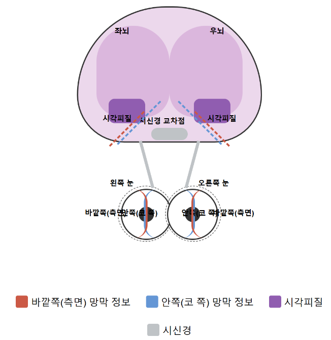 더 놀라운 것은 우리 두 눈이 협력하는 방식이다. 눈의 바깥쪽(측면) 망막에 맺힌 이미지는 같은 쪽 뇌로 직행하지만, 코 쪽(안쪽) 망막의 정보는 시신경 교차점에서 길을 바꿔 반대쪽 뇌로 향한다. 이렇게 해서 왼쪽 눈과 오른쪽 눈이 조금씩 다르게 본 두 개의 이미지가 뇌에서 만나 하나로 합쳐진다. 그 결과, 우리는 3D 세계를 보게 되는데, 이 과정은 첨단 영화관의 3D 기술보다 훨씬 정교하다.