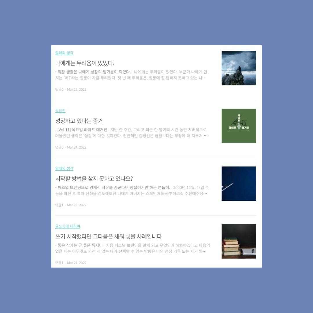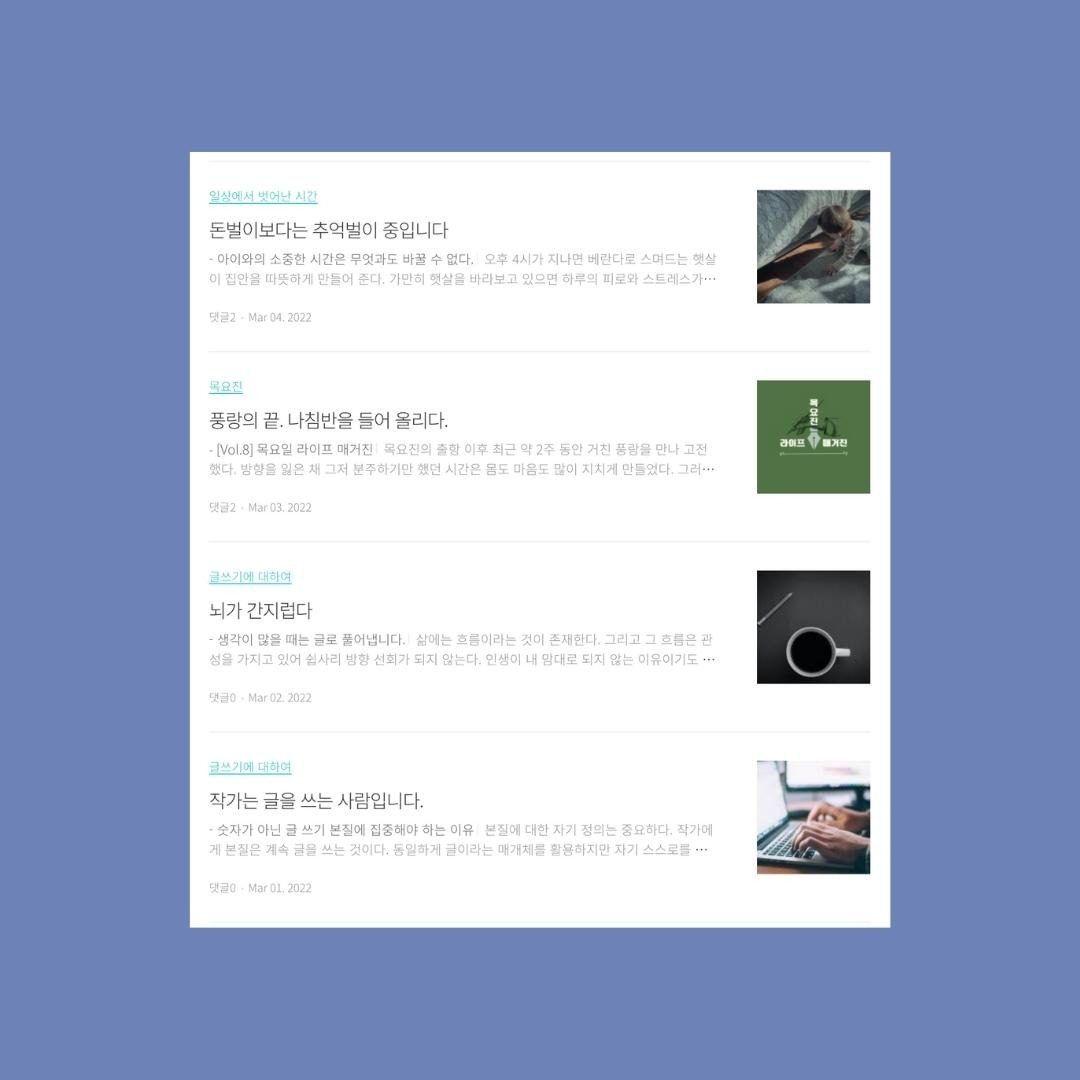 3월 한 달 동안 총 24편의 글을 발행했다. 오늘의 목요진까지 포함하면 25편이다. 쉽지 않았지만 막상 해보니 못할 것도 아니었다.