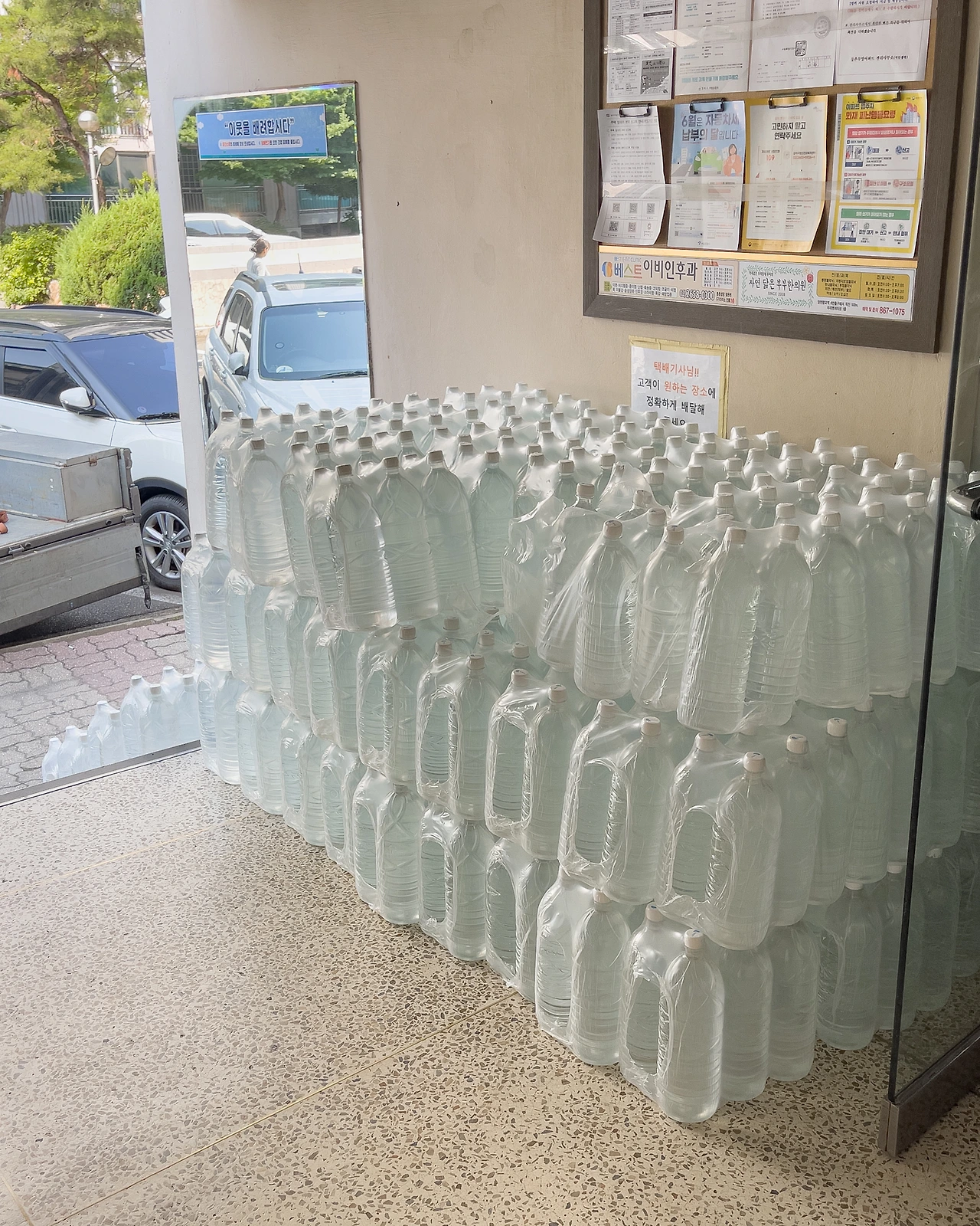 하나 둘, 동네분들이 흰 말통을 카트에 싣고 경로당으로 간다. 경로당 쪽에 물호스를 연결해 뒀으니 물을 떠가라는 안내 방송이 나왔다. 일단 집에 가방을 놓고 다시 나와 카트 대열에 합류했다. 경로당 앞에 갔더니 아파트에서 나눠준 물통뿐만 아니라 김치통에 대아까지, 가지고 나올 수 있는 통은 다 들고 나온 분도 계셨다. 아주머니들 대화를 건너 들으니 당장 해결될 문제가 아닌 듯 보였다. '설마.'