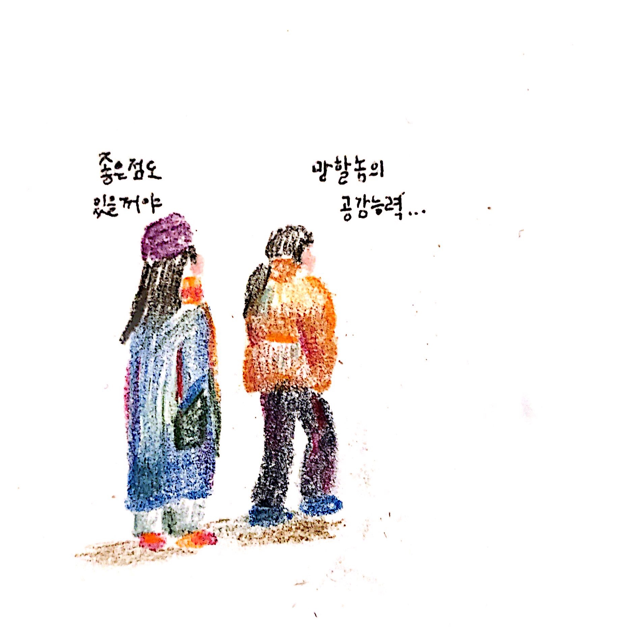 '이해해주고 참아준 내가 문제였을까? 적당히 선을 그었더라면 좋았을까? 그들도 어릴 적 어떤 불행한 배경에 의해 저런 사람이 된 걸까? 저렇게 살아가면 진짜 믿을 수 있는 친구는 있을까? 그런 친구도 없다면 참 안타까운 삶이다... ' 그렇다. 내 생각은 나를 하대하는 그들을 욕하다가도 어느새 또 그들의 상처, 그들의 외로운 삶에 감정 이입을 하고 공감하고 있었다. (휴...)
