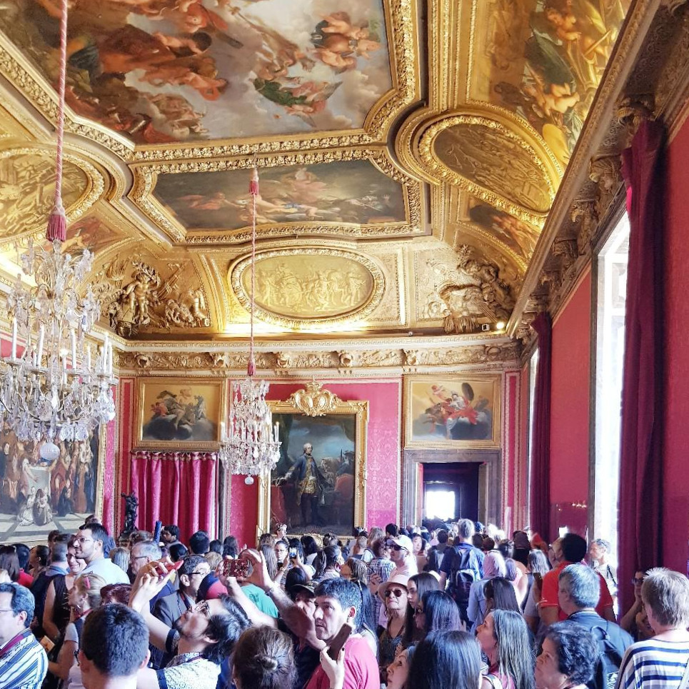 시간이 지나 우리 차례가 되긴 했으나 궁전 안으로 들어간 뒤에도 닝겐은 줄 기미를 보이지 않는다. 살롱으로 보이는 비교적 넓은 공간에 이르자 길은 둘로 나뉘었다. 그냥 계단으로 나가버리던가(왼쪽) 투어를 계속하던가(오른쪽).