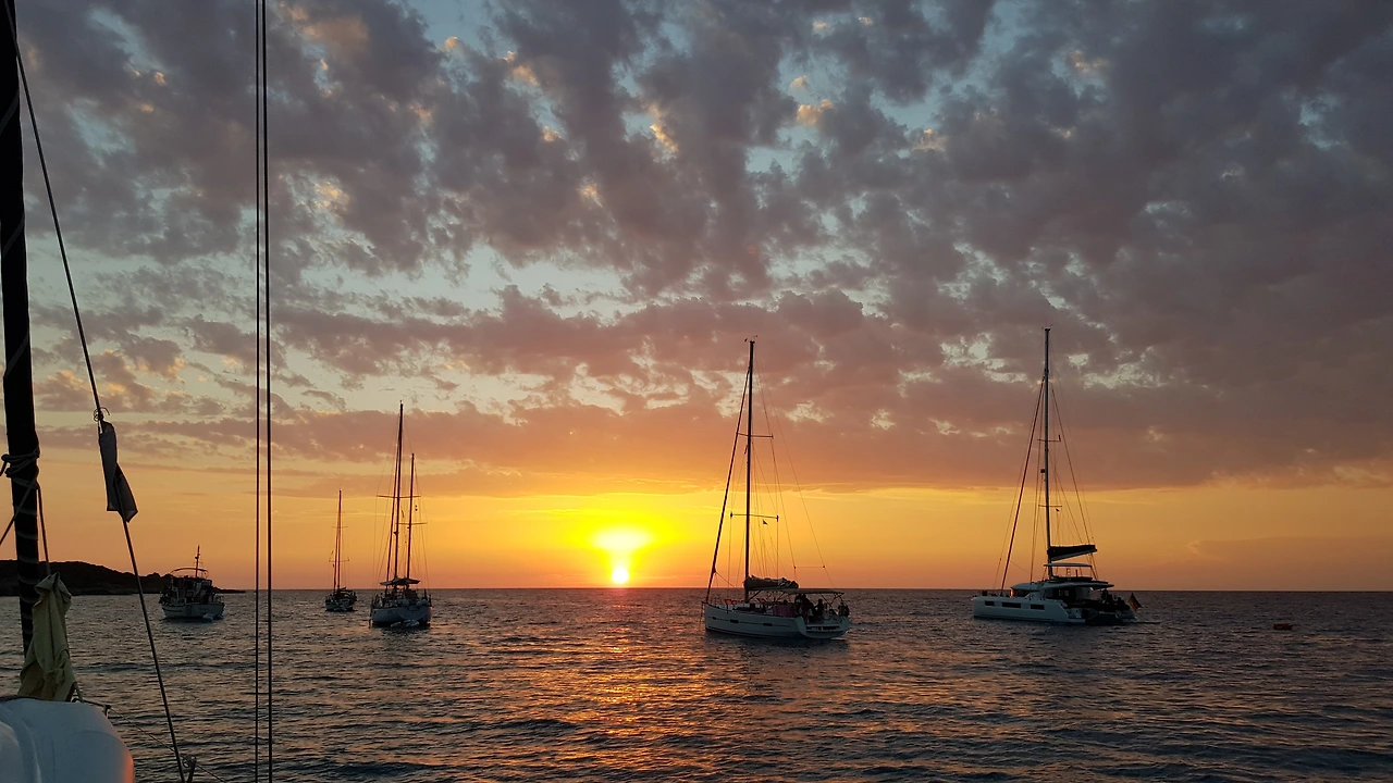 배 구석구석 식량을 채우고 물통과 기름통도 가득 채우고 아침 일찍 출항하면 보통 늦은 오후에 코르시카 섬에 도착합니다. 첫번째 닻을 내리고 첫번째 수영을 한 뒤 가장 유통기한이 짧은 음식으로 첫번째 저녁을 지어먹고 바다에서의 첫 밤을 보냅니다. 다음날부터 배에 탄 우리의 '전형적인 하루'는 이렇습니다: