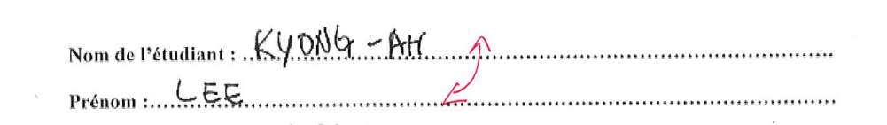 일단 보기 좋게 시험지 첫 줄 이름 쓰는 칸 부터 빨간펜..