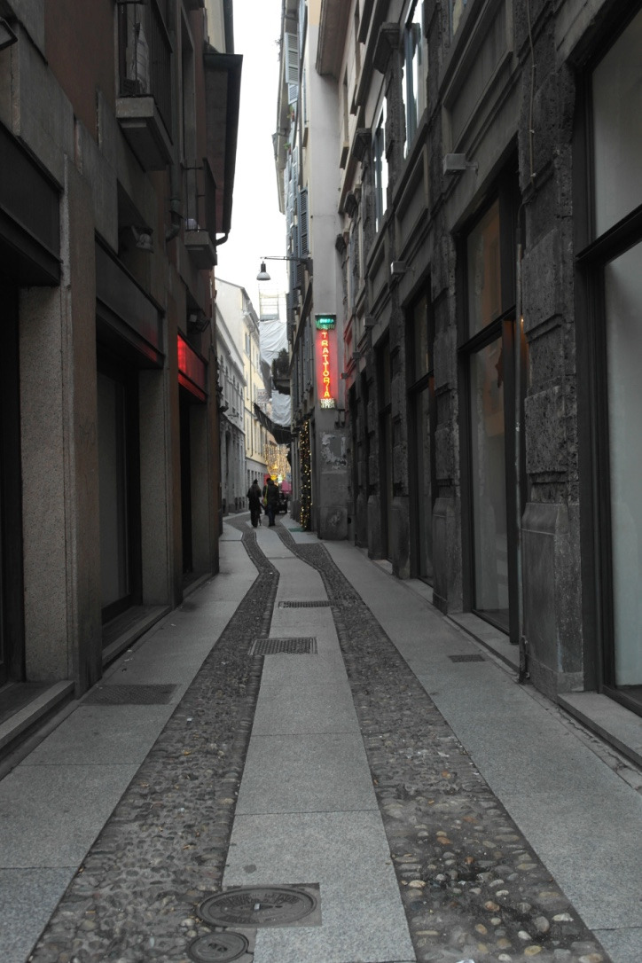브레라 미술대학이 있는 곳으로 이 거리는 매우 깨끗하고 이탈리아스러운 부촌 거리이다. 저녁에 친구들과 식사하기에도 좋고, 분위기 있게 걷기에도 좋다. 그러나... 이 사진을 보듯 동그란 돌들이 이곳 길을 장식하고 있다. 결코 신지 말아야 할 신발은 여성들의 힐임을 강조해도 부족하지 않다.