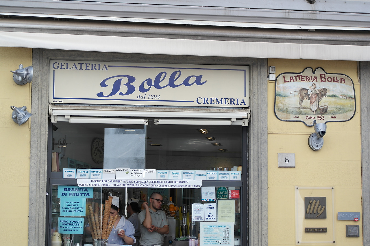 이 가게는 꼬모에서 시작된 오래된 젤라토 샵이다. 1893년에 시작되었으며 옛날에는 라테, 즉 소의 우유를 판매하는 곳이었으나 시간이 지나면서 현재는 카페와 젤라토를 판매하는 곳으로 변모하였다.(오른쪽 간판 참조)