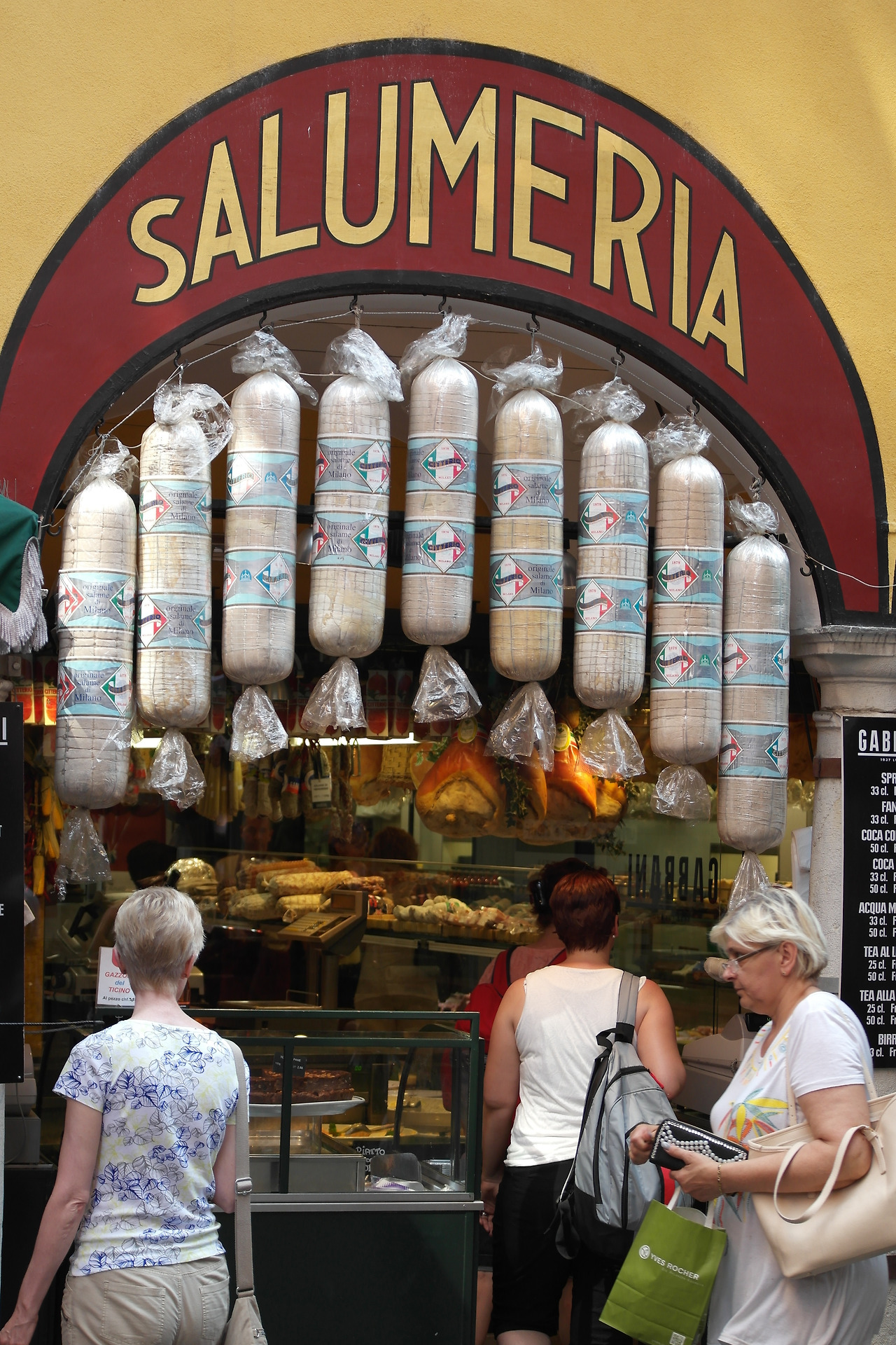 아치 형태에 단순하게 적힌 센세리프체의 글자가 유난히 눈에 띈다. SALUMERIA 살라미를 판매하는 가게라는 뜻을 담고 있는데 노란, 붉은색, 검정 테두리가 이 상점의 판매상품인 살라미와 매우 잘 어우러져 보인다.