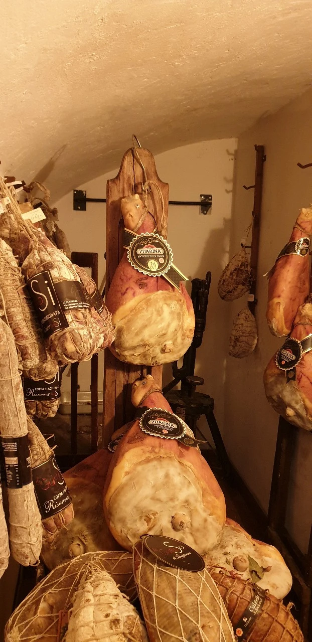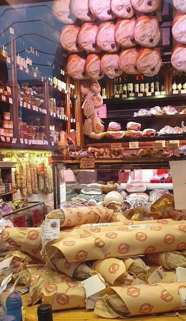 밀라노에 사는 친구네에 갈 때 선물할 겸, 한국에 이 맛을 가지고 갈 겸 해서 파르마 동네에서 유명한 프로슈토 가게를 방문했다. 이탈리아에는 동네별로 이렇게 프로슈토, 살라미, 치즈를 파는 가게들이 있다. 우리나라로 말하면 동네 정육점 같은 곳으로 반찬을 산다고 생각하면 이해하기 쉽다.
