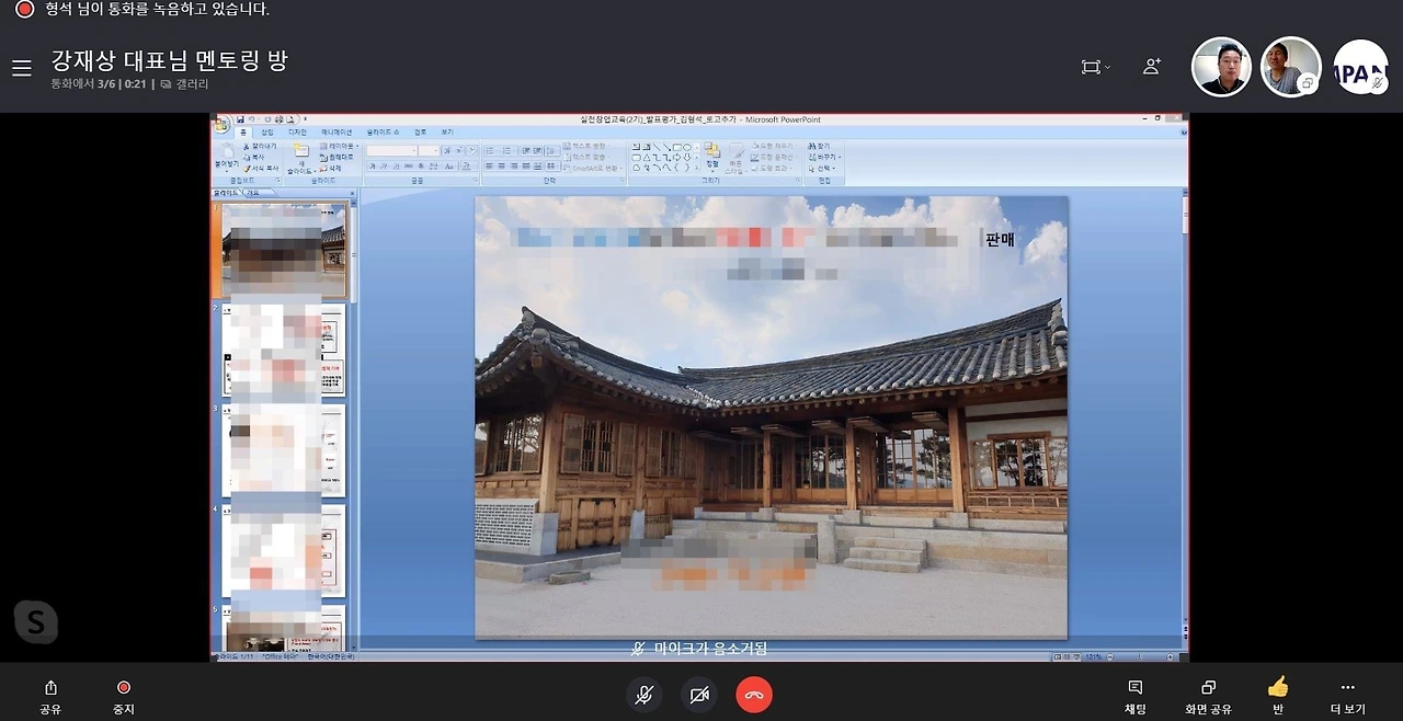 오늘 낮부터 저녁까지 담당하고 있는 18개팀을 대상으로 팀별로 한시간씩 2020 동국대 실전창업교육 BM 특화 2기 멘토링을 했습니다. 멘토링 첫회차라 난이도와 긴장도가 높았지만, 사업아이템 자체가 흥미롭거나 팀역량 자체가 뛰어나서 시간 가는 줄 모르고 즐겁게 했습니다. 즐겁고 보람있었기는 한데, 연속으로 알렉스넷과 매드해터의 멘토 3명이 각각 6시간 동안 6팀 릴레이로 하고 나니 끝나자마자 목은 맛이 가고 유체이탈 되었네요. 다음주 2회차와 3회차까지 18개팀과 함께 성장하는 시간이 되도록 하겠습니다.