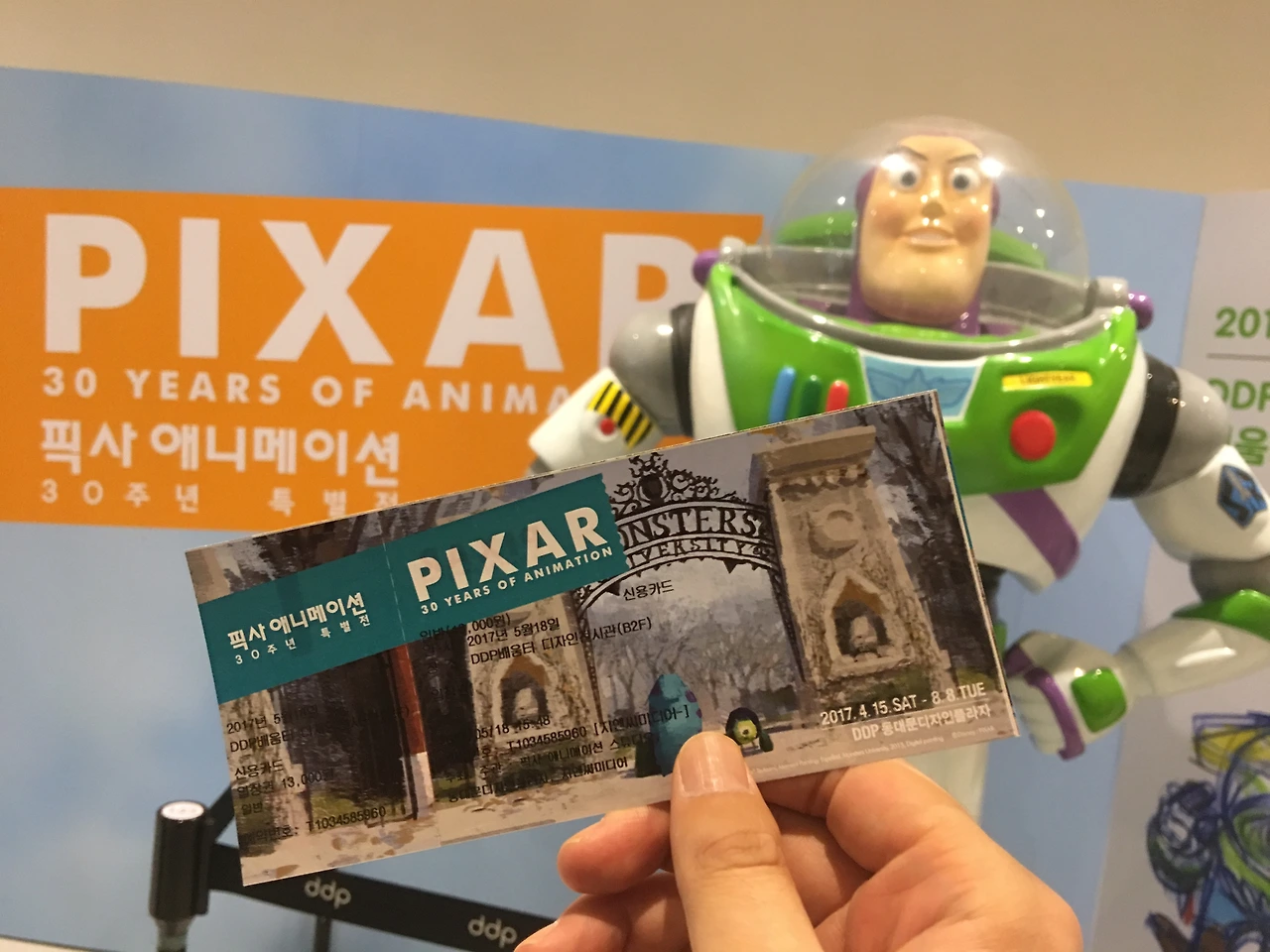 저녁 픽사 포럼 강연과 대담을 앞두고 생각이 한번 더 정리되고 옛추억에 빠질 수 있어서 너무 좋았당~~ 가장 좋아하는 캐릭터인 버즈를 배경으로 인증컷! (전시장 내부는 사진 촬영 금지)