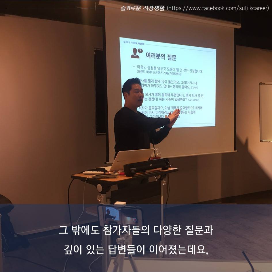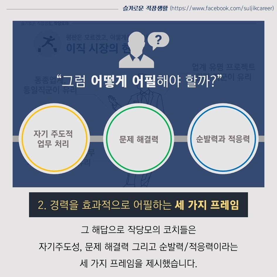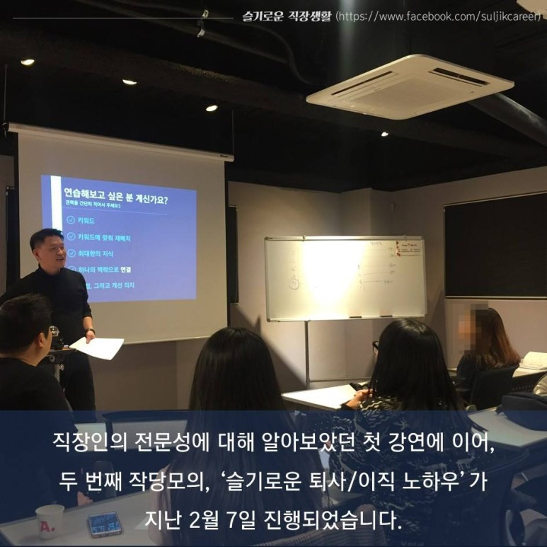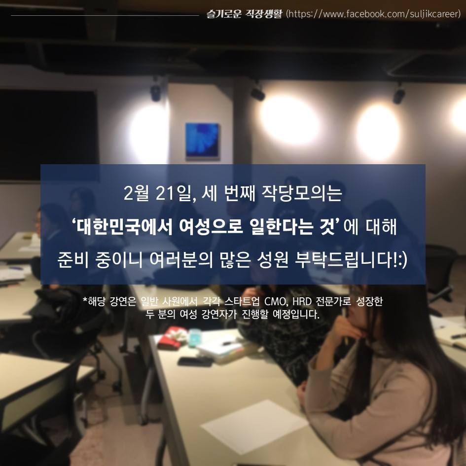 ▶ 슬기로운 직장생활 페이스북 페이지에 오시면 직장생활을 위한 현실적인 이야기들과 작당모의 최신 소식을 받으실 수 있습니다.