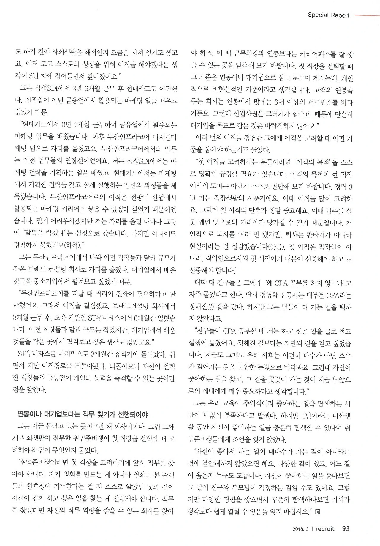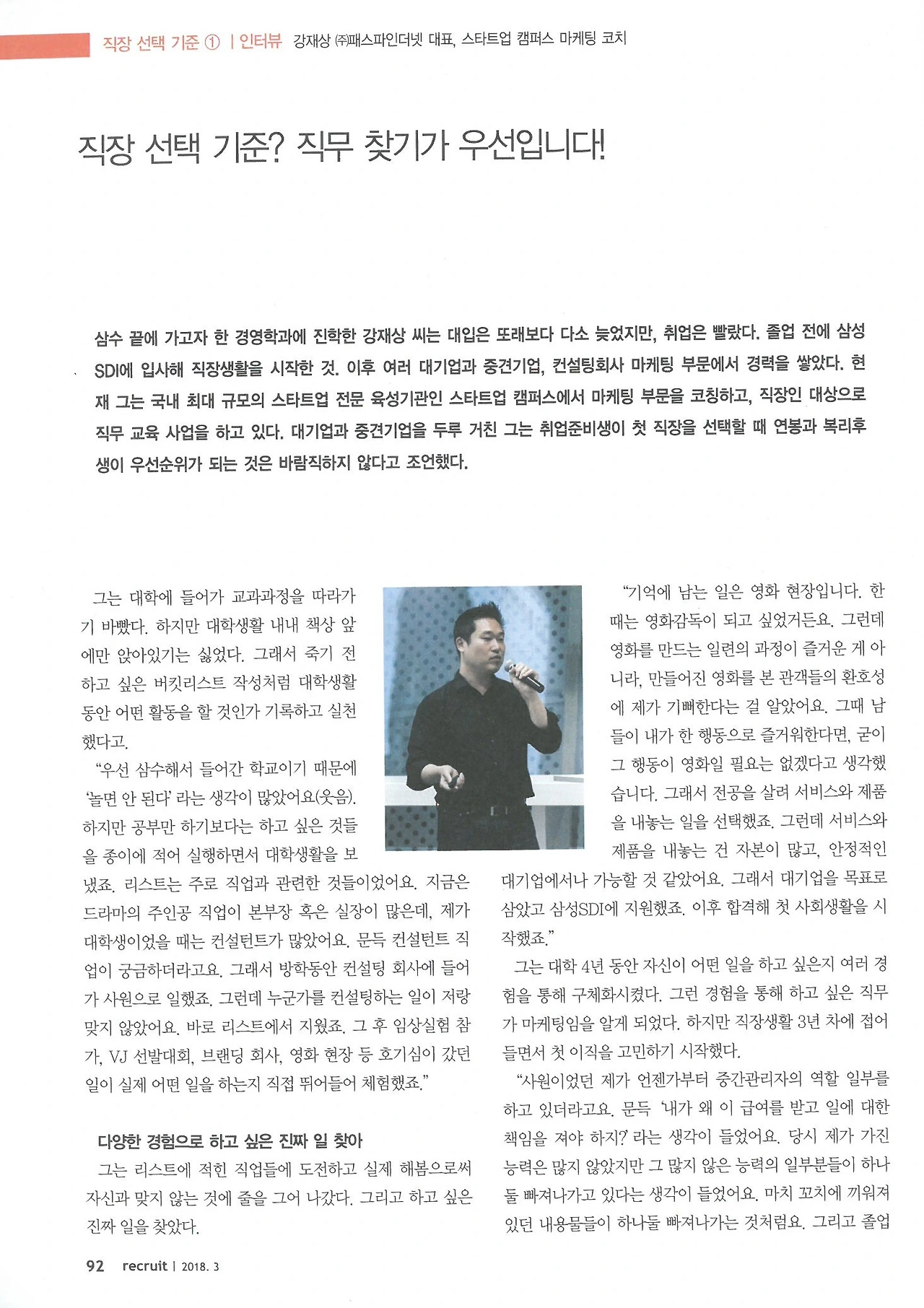 한경 월간 리크루트 이번호(2018년 3월호)에 제 인터뷰가 실렸습니다.
