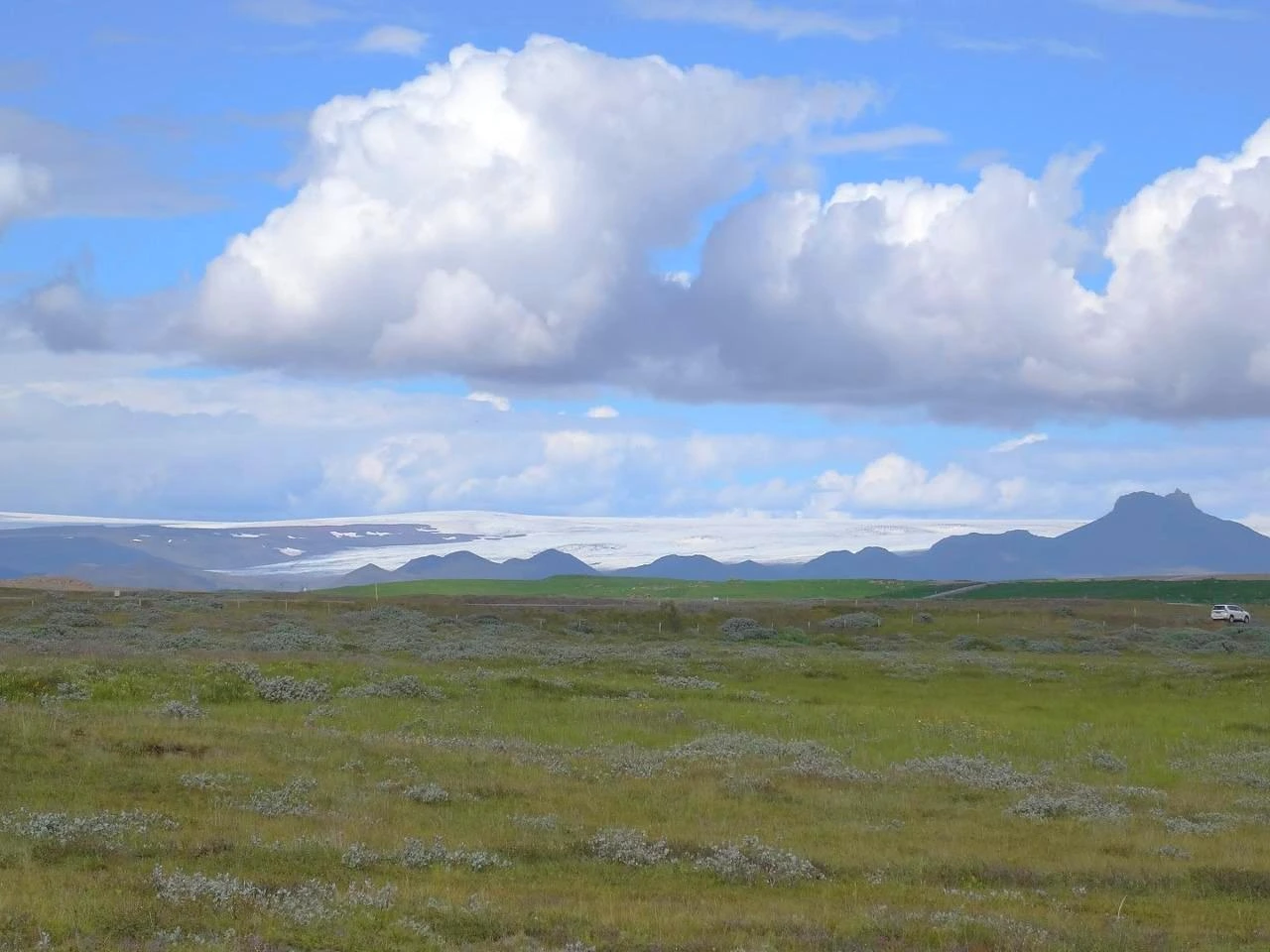 폭포 위쪽으로는 협곡을 따라서 탐방로가 조성되어 있다. 거기서 보면 평원 위를 흐르던 강물이 갑자기 갈라진 지각의 틈을 따라 떨어져 내리는 것처럼 보인다. 많은 아이슬란드의 폭포에서 발견되는 공통점인데, 수억 년간 자연적으로 침식된 지형이 아니라, 화산 활동으로 급격하게 생긴 지형임을 알 수 있다. 협곡 위 탐방로를 걷다가 폭포 반대쪽으로 굽어 보니, 평원 저 너머로 빙하가 보인다. 지도상으로 확인한 바에 따르면 아이슬란드에서 두 번째로 큰 Ice Cap, 랭외르퀼 Langjökull의 끝자락이 아닌가 싶었다. 이 흐바타 강물은 저 빙하로부터 온 것이 아닐까?