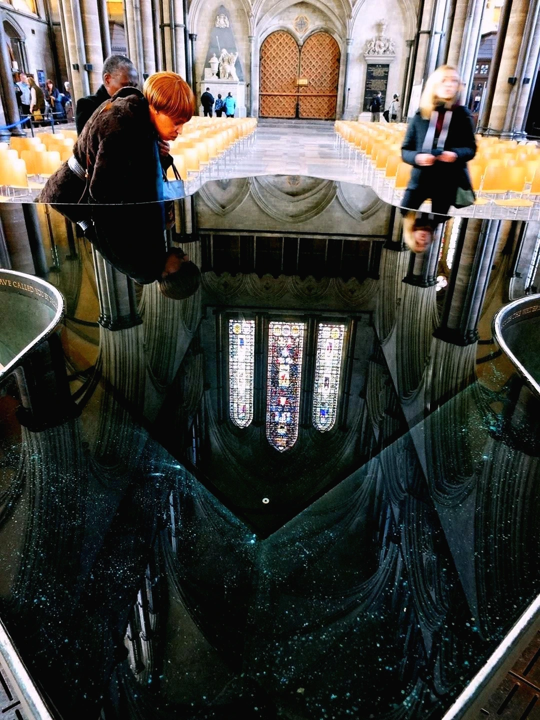 회랑 한가운데는 언뜻 거대한 거울이 눕혀져 놓여 있는 줄 알았는데, 가만 보니 거울이 아니라 네 방향으로 물이 떨어지는 분수였다. 한치의 물결도, 티끌도 없는 물의 거울은 웅장한 성당 내부와 천장, 스테인드 글라스를 그대로 비춰주고 있었다. 마치 ‘부끄러움이 없다면 이 곳에 네 얼굴을 비춰보라’고 말하는 것 같다.