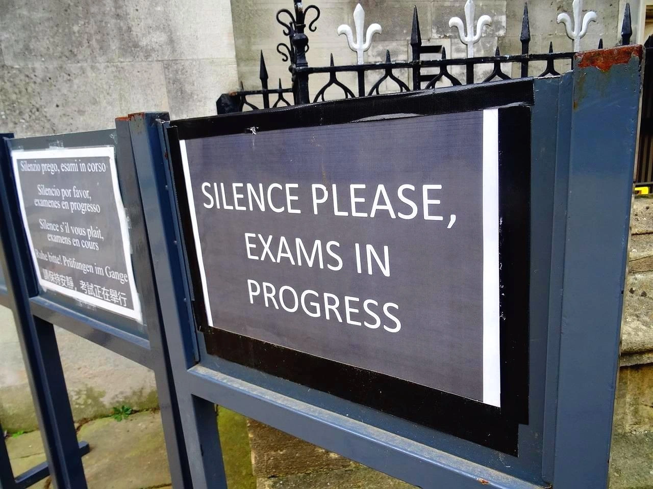 크라이스트 처치에서 우리를 가장 먼저 반긴 것은 시험 중이니 조용히 하라는 안내문이었다. 영어 외에도 5개국 어로 쓰여 있었는데 한국어가 없는 것을 보니 괜히 안도의 한숨(?)이 나왔다. 이 곳이 역사 관광지임과 동시에 학업이 진행 중인 대학 현장임을 생생히 느낄 수 있다.