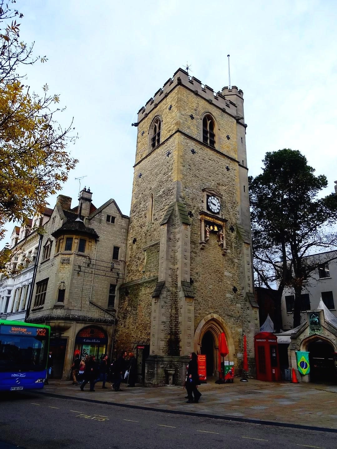 이 탑은 12세기에 있었던 세인트 마틴 교회의 종탑이었는데, 중심가 교차로에 서 있어 탑 위로 올라가면 옥스퍼드의 전경을 한눈에 볼 수 있어 유명하다. 하지만, 나는 성모 마리아 대학 교회의 종탑 위에 올라가서 옥스퍼드를 조망할 계획이었으므로 카팩스 타워를 올라가는 것은 단념했다. 우리 아이들이 한 도시에서 2개의 탑에 올라갈 리가 없었기 때문이었다.
