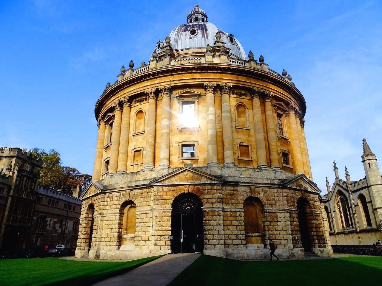 베네치아 건축가 팔라디오(Palladio)가 창안한 팔라디안 스타일로 지어진 원형 건물이 네오 클래식한 멋을 풍기고 있다. 이 도서관은 18세기에 옥스퍼드 출신의 물리학자이자 의사로 큰 부를 쌓은 래드클리프의 유산으로 건립되어 그의 이름이 붙어 있다. 옥스퍼드에는 이 도서관 외에도 그의 이름으로 된 건물이 4개나 더 있다.