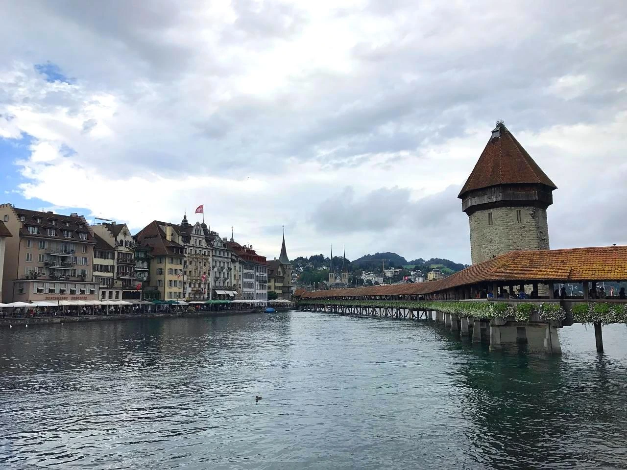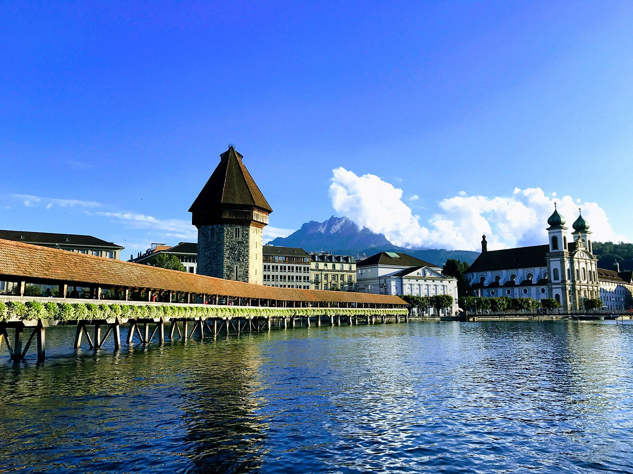 변화무쌍한 스위스의 날씨 덕에 이른 오후에는 흐리고 궂은 하늘 아래서 카펠교와 워터 타워를 바라보다가 저녁 무렵에는 푸른 하늘 아래 전혀 다른 모습의 카펠교를 감상하는 즐거움이 있었다.