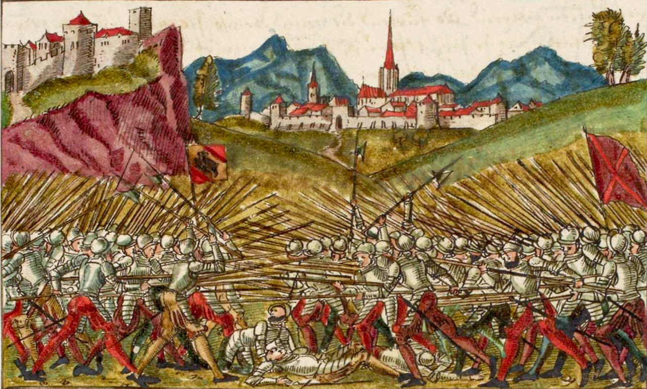 장창(Pike)과 미늘창(Halburd)으로 중무장한 전투 진형은 어떤 상황에서도 흐트러지지 않았고, 적의 섬멸을 목적으로 했기 때문에 포로를 남기지 않고 무자비하게 죽였으며, 전장에서의 죽음을 명예로 여겼던 중세 유럽의 최강 전투 집단.