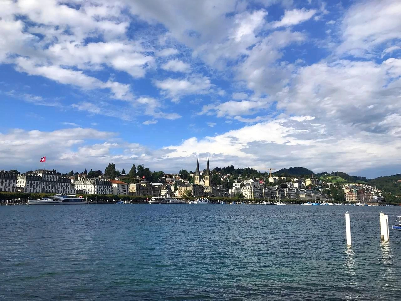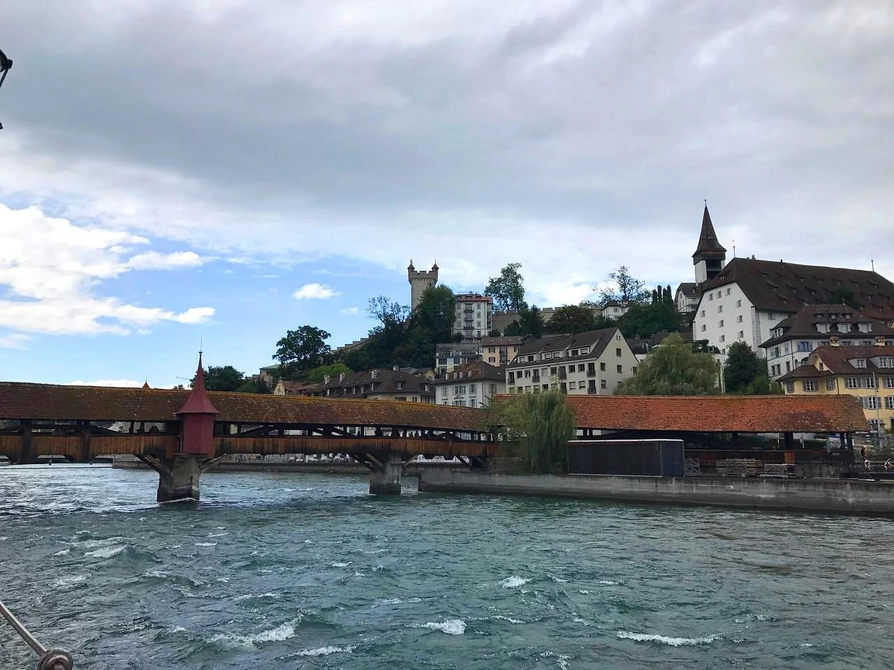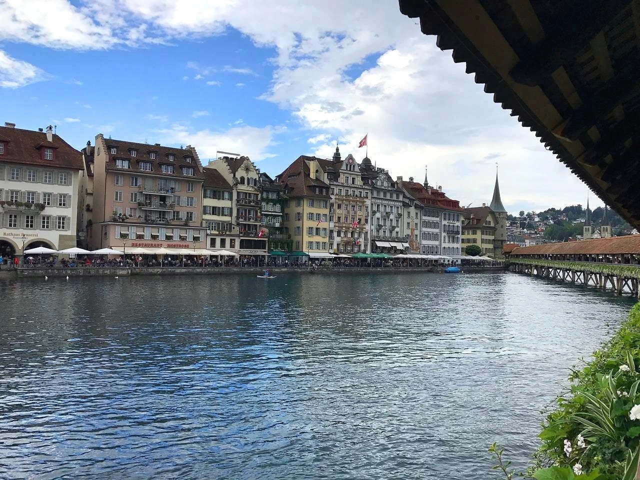스프레우어교를 등진 상태에서 루체른 호수를 왼쪽에 끼고 카펠교 방향으로 걷기 시작했다. 강을 따라 산책하면서 본 루체른은 암스테르담과 비슷한 느낌이 살짝 들었지만 좀 더 넓고 여유 있는 분위기였다. 비가 그치면서 강변에는 주말 산책을 나온 사람들이 점점 늘어나고 있었다.