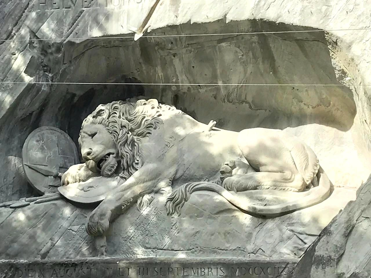 프랑스 대혁명 당시 루이 16세를 지키다 전멸한 라이슬로이퍼, 즉 스위스 용병 근위대를 기리기 위한 작품이다.