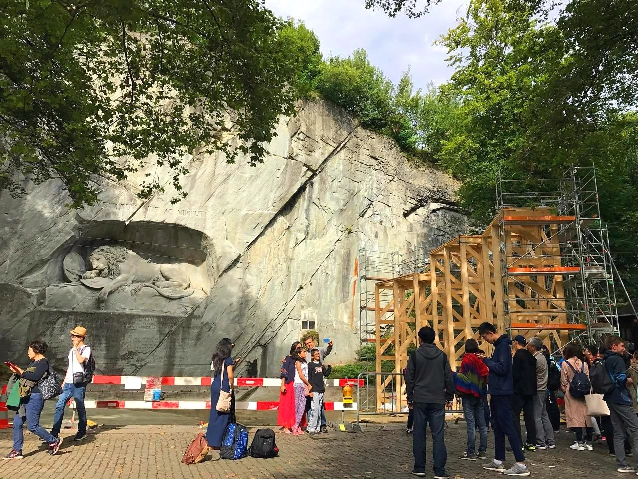 마크 트웨인은 거대한 사자의 모습이 아래 연못에 비친다고 했으나, 우리가 갔을 때는 아쉽게도 대대적인 보수 공사 중이어서 연못과 어우러진 사자상을 감상할 수는 없었다. 하지만 고통으로 일그러진 생각보다 큰 사자의 얼굴을 보며, 타국의 왕을 위해 비참하게 스러져간 스위스 용병들의 처절함과 그렇게 밖에 할 수 없었던 이 나라의 역사가 가슴을 아프게 쳤다.